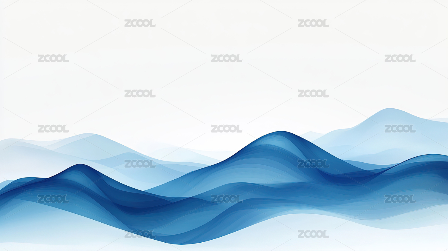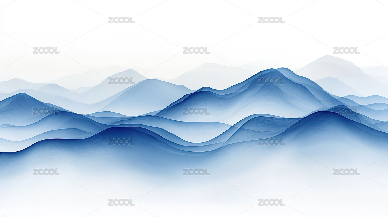 蓝色曲线山峰中式水墨插画背景