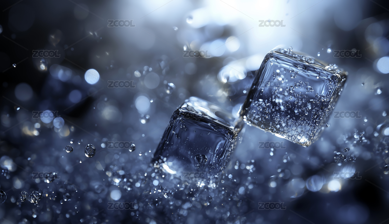 深蓝色背景冰块特写