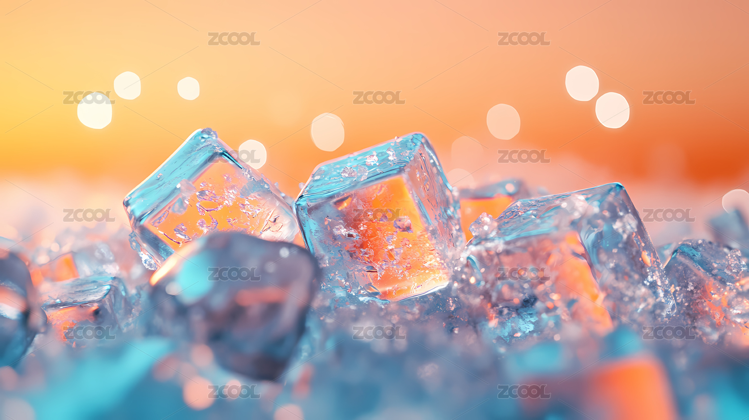 夏日清爽的方块晶体冰块折射出光芒