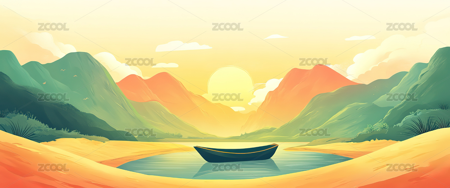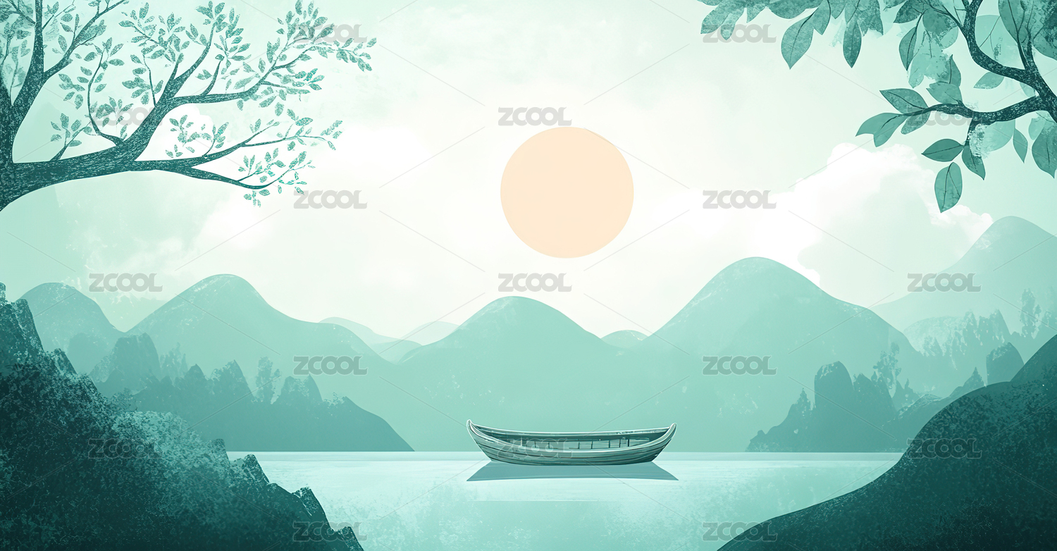 水彩风格宁静湖光山色
