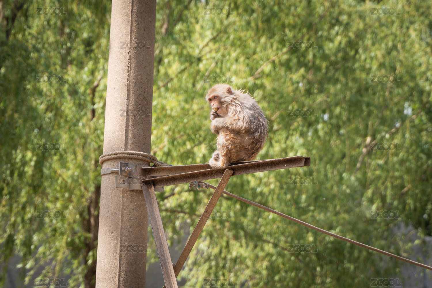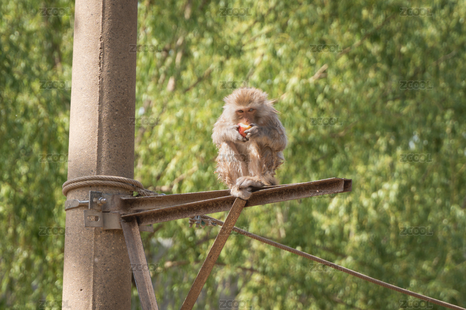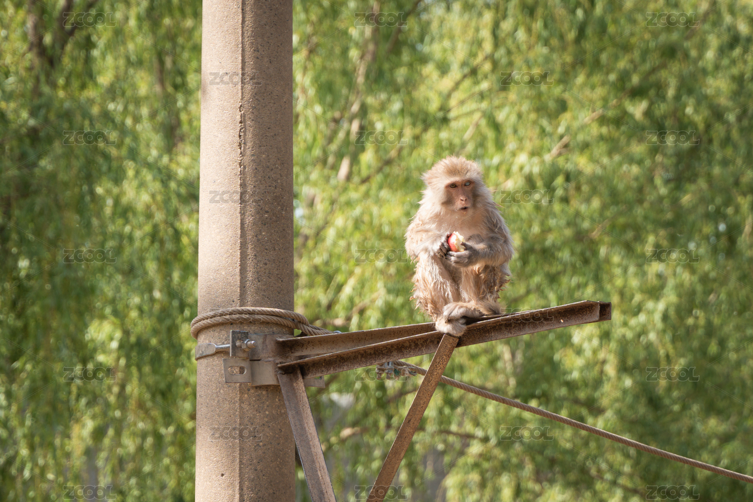 独眼,猕猴,电线杆,吃水果,孤独,受伤,白内障,觅食,动物,城市
