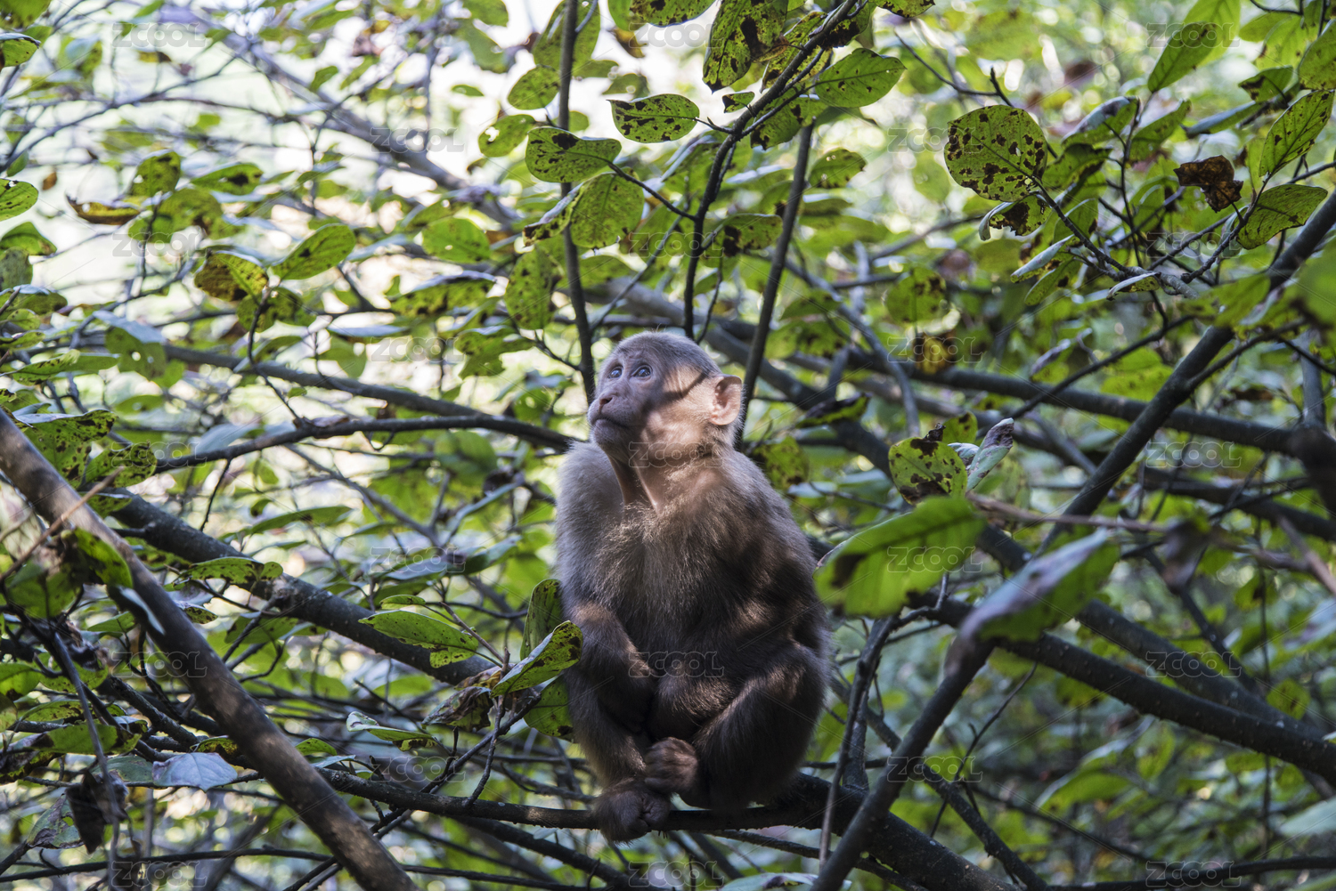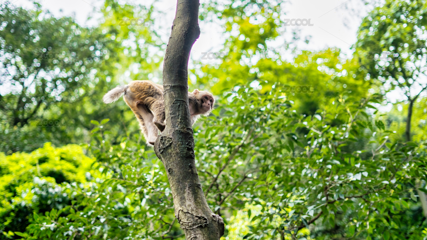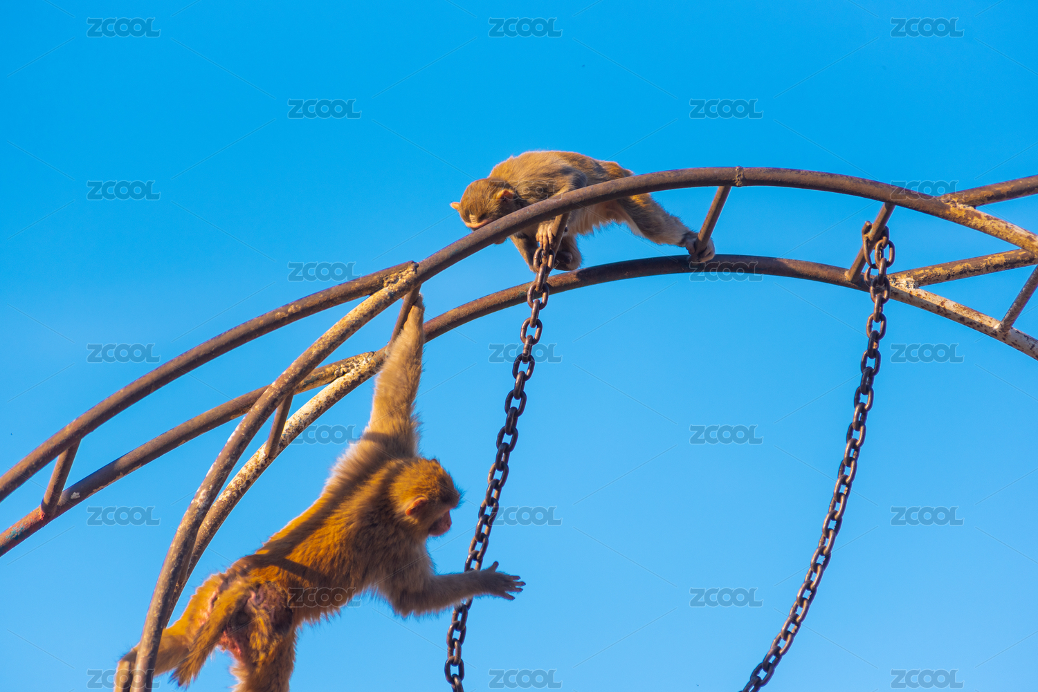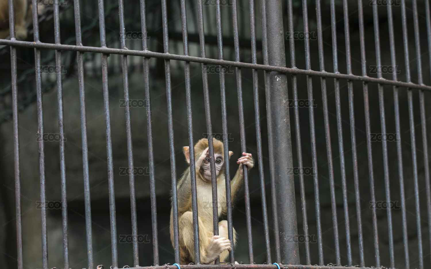 独眼,猕猴,电线杆,吃水果,孤独,受伤,白内障,觅食,动物,城市