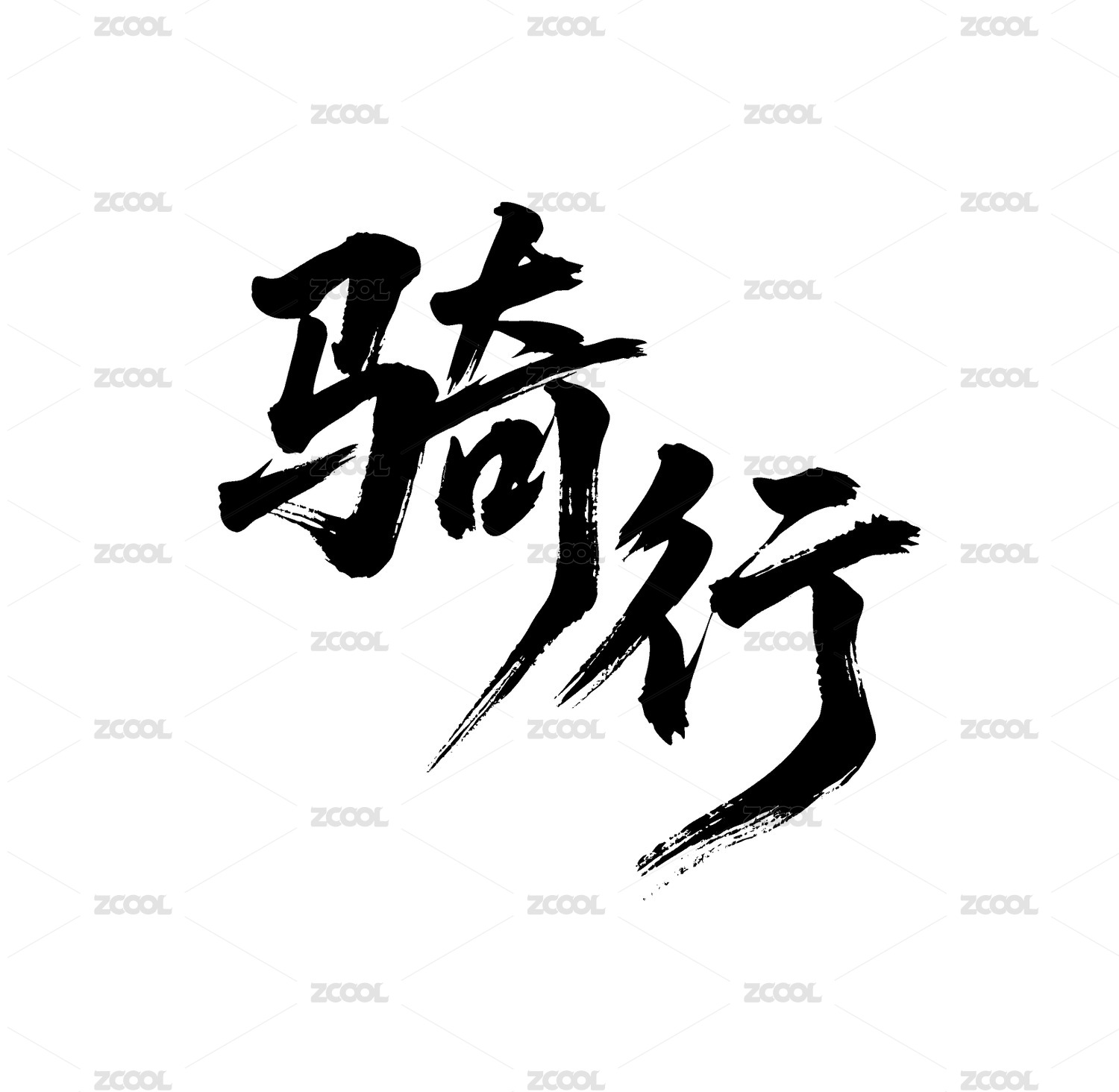 骑行矢量书法手写毛笔字