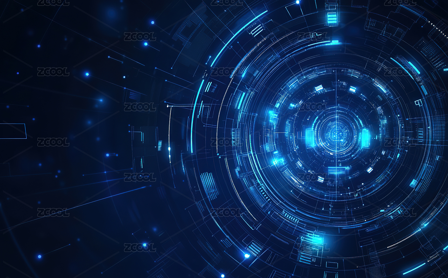 蓝色发光圆圈科技峰会未来感概念抽象背景