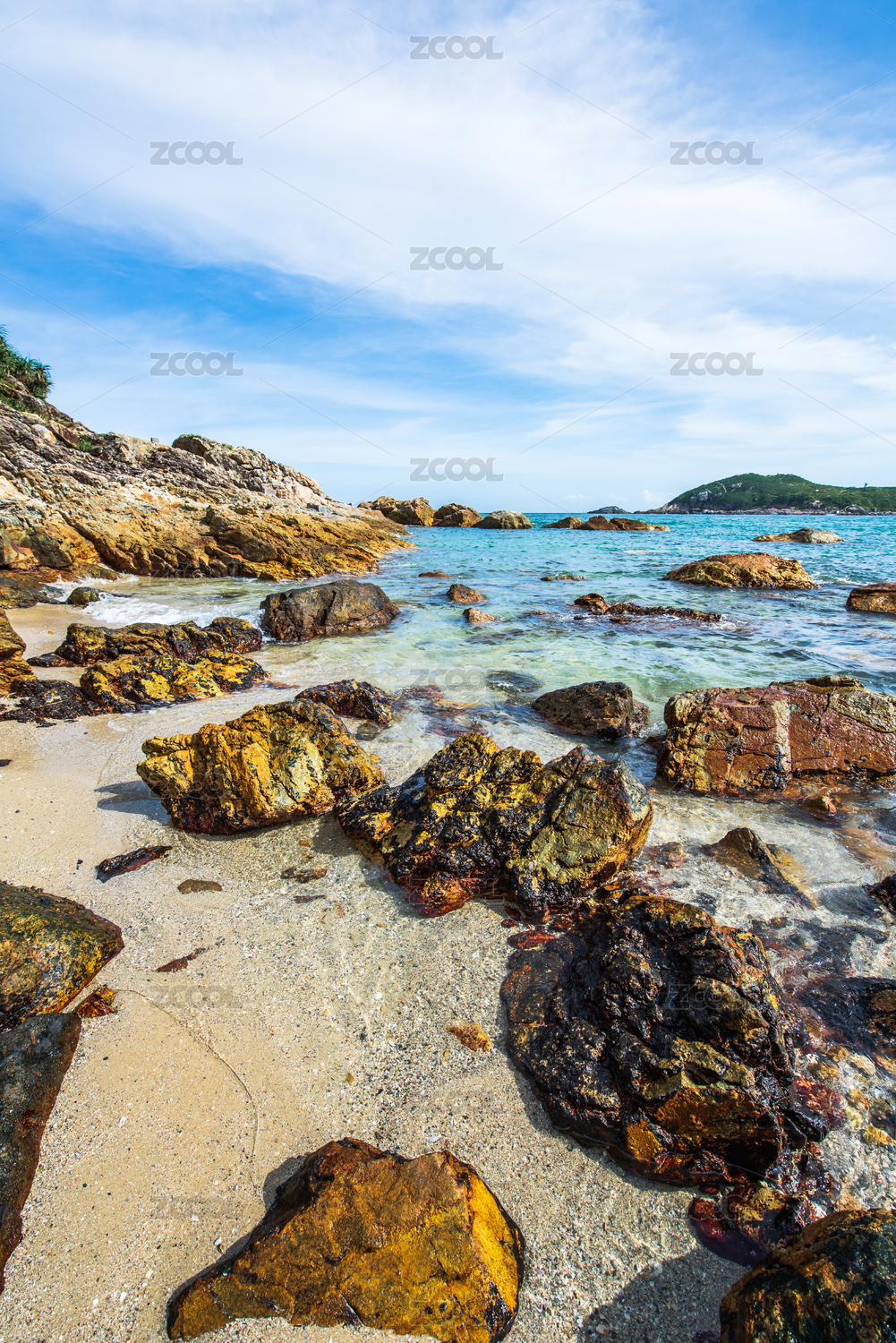 青色,蓝色,云朵,石头,阳光,东涌沙滩,东涌,东冲,深圳,大鹏半岛