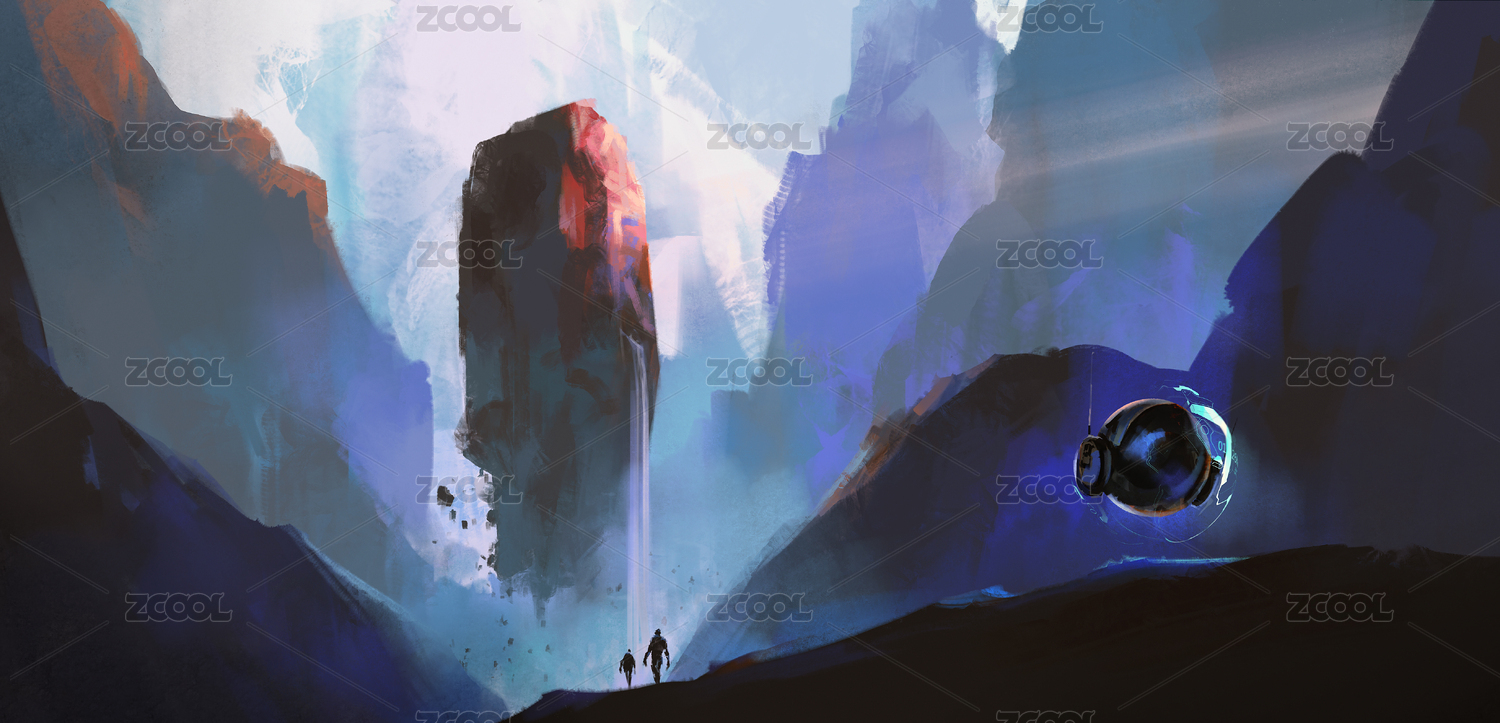 宏伟,外星球,建筑,奇特,蘑菇,黄沙,伞状,城市,未来,科幻