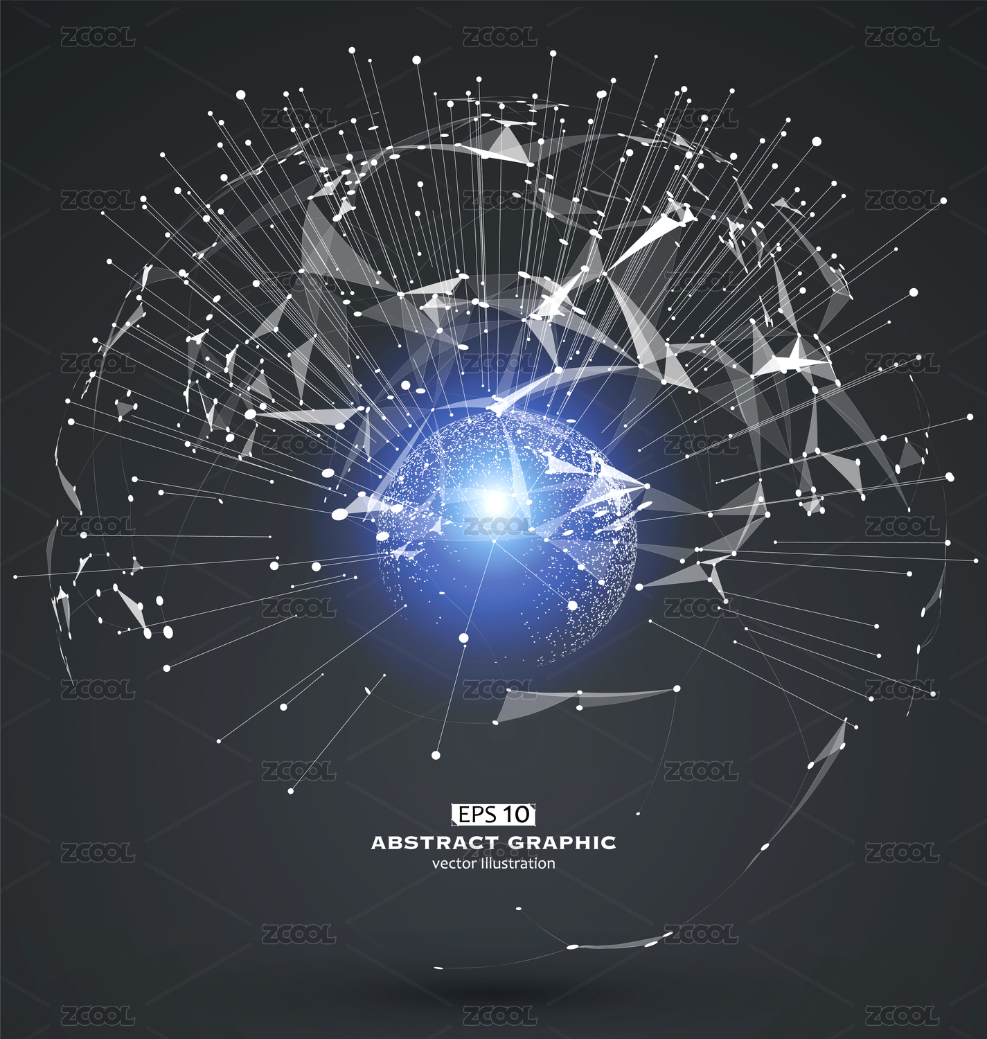点线面组成的立体球面、全球合作、VR技术、现代背景三维立体图。