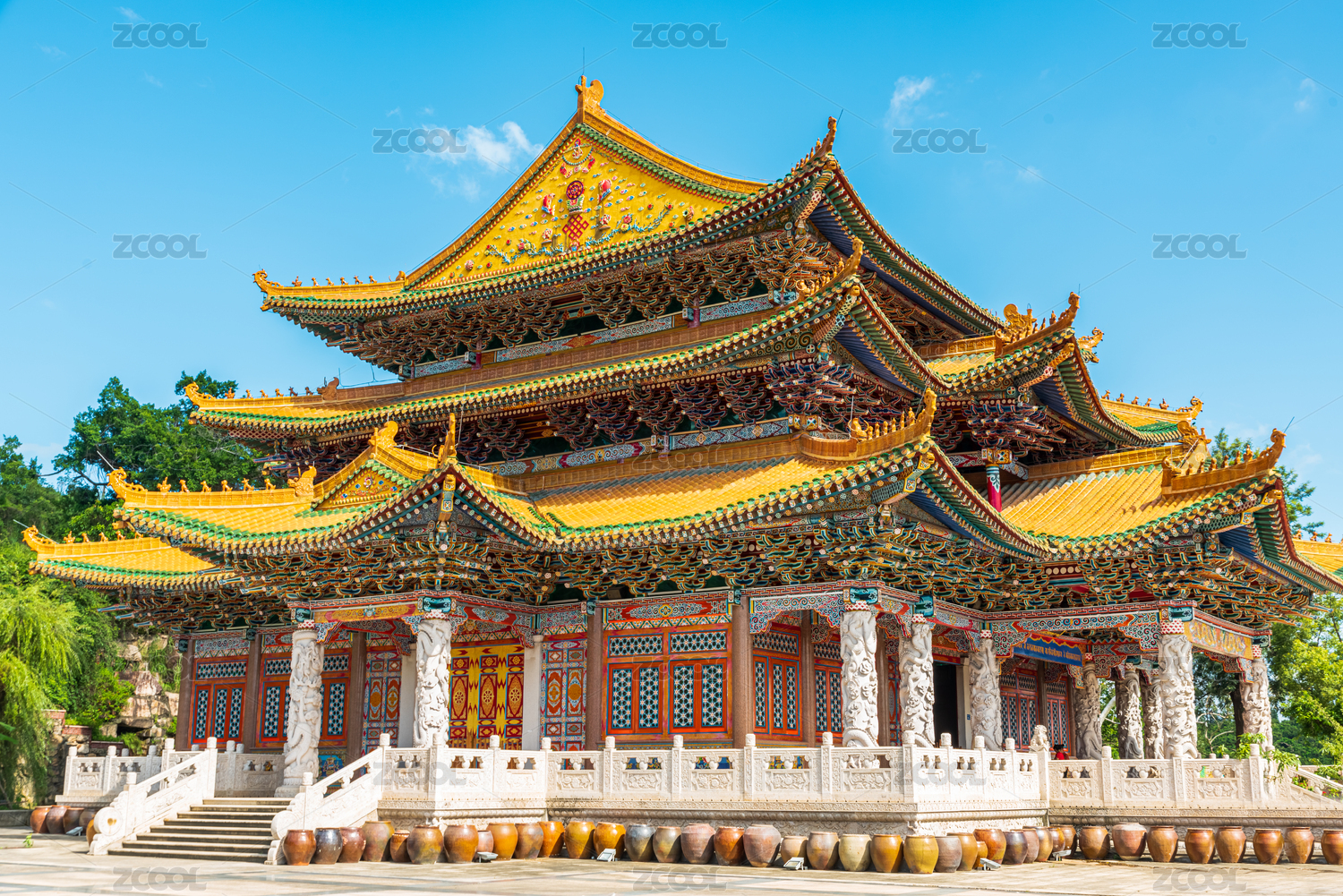 云南,香格里拉,龟山公园,月光古城,迪克宗古城,大佛寺,仰拍,寺庙,古建筑,山顶