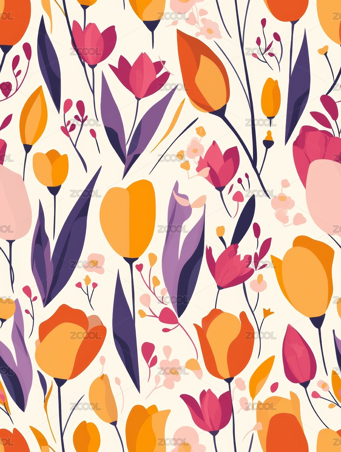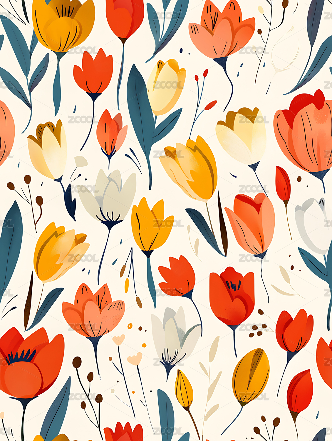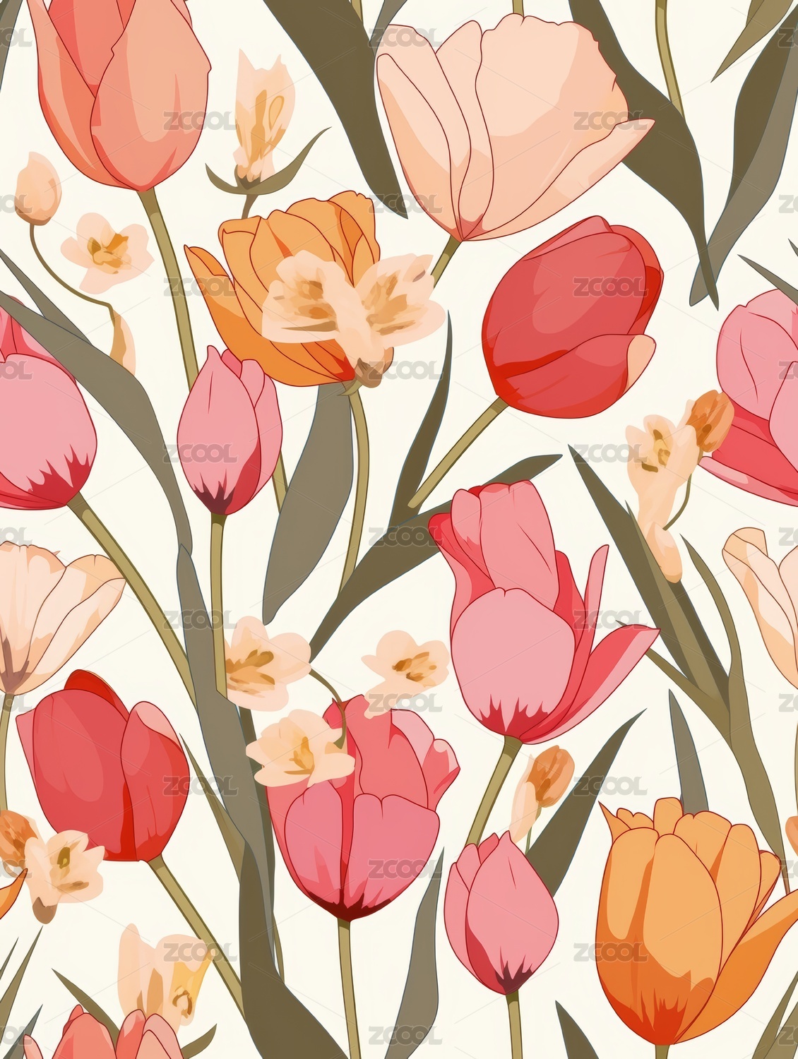 卡通图,图案,郁金香,布料,印花,背景,插画,叶子