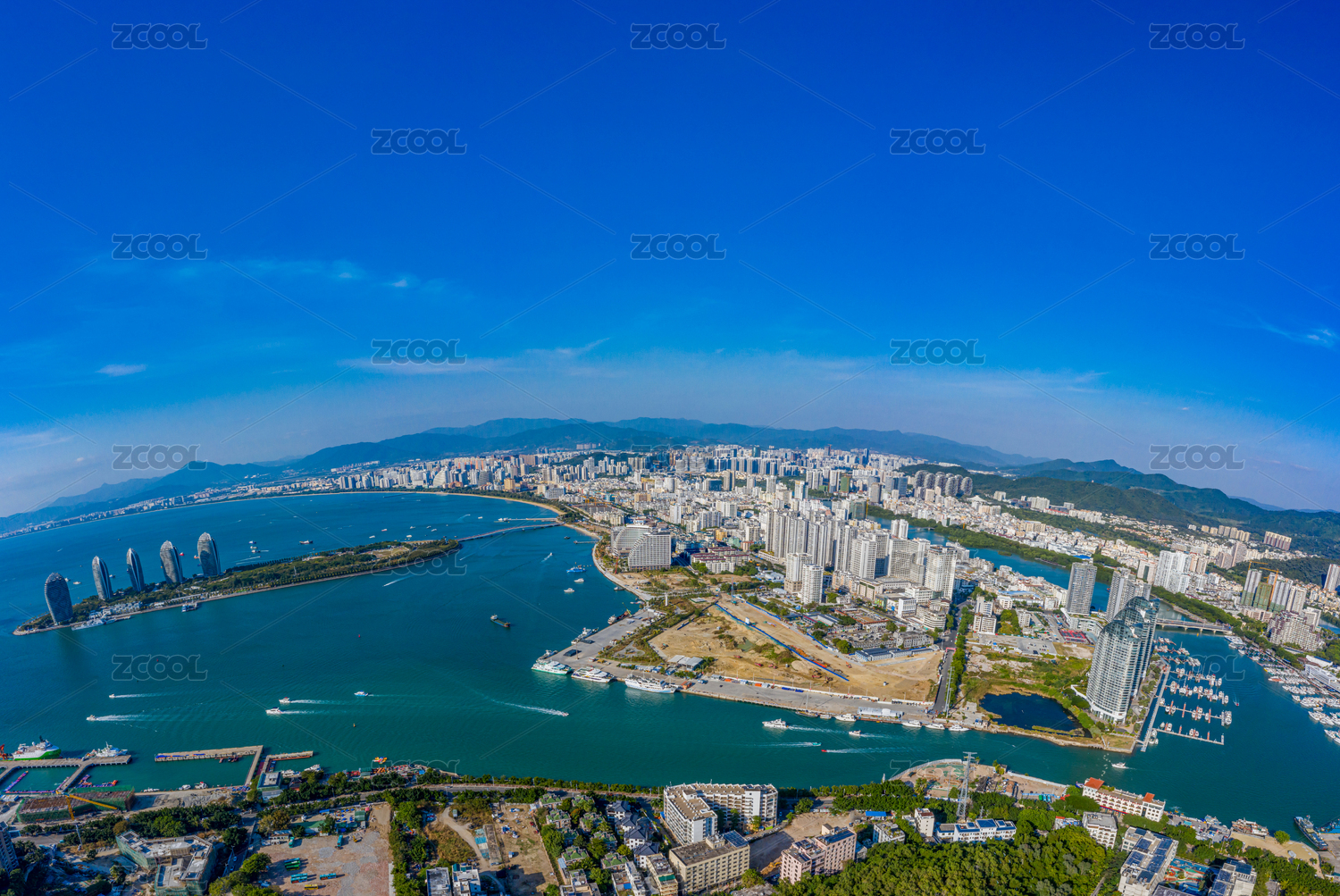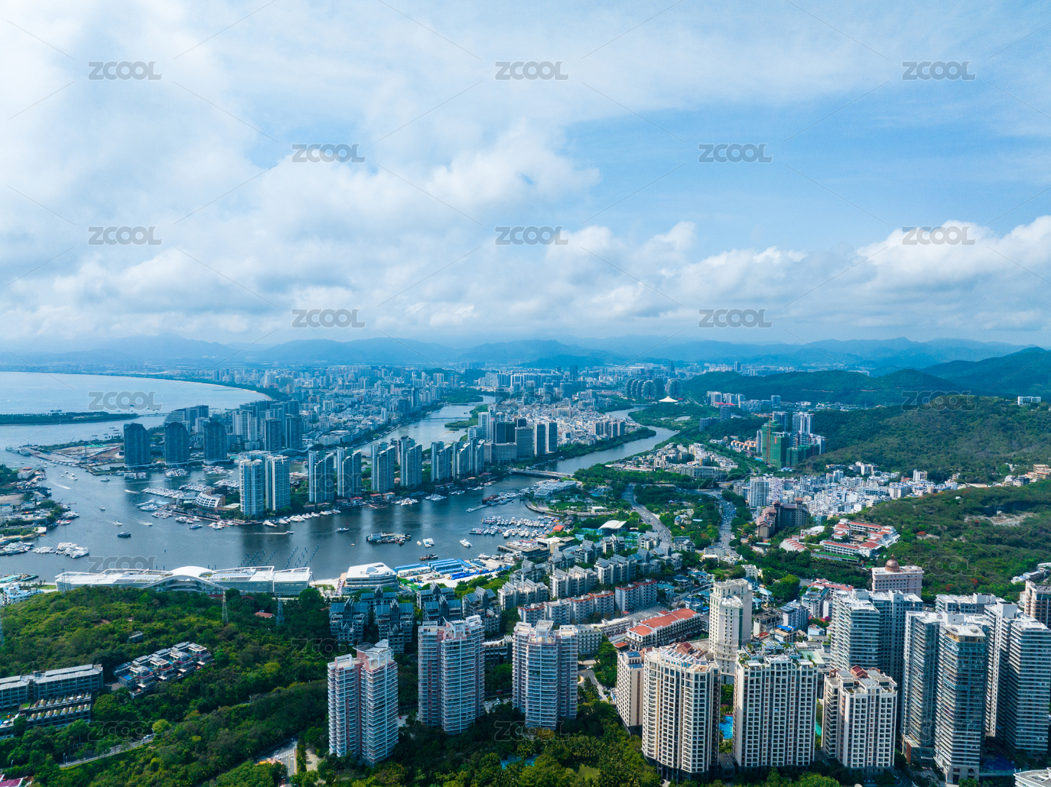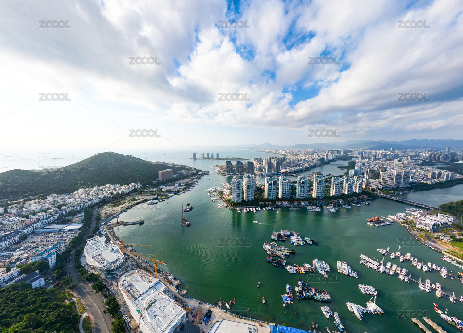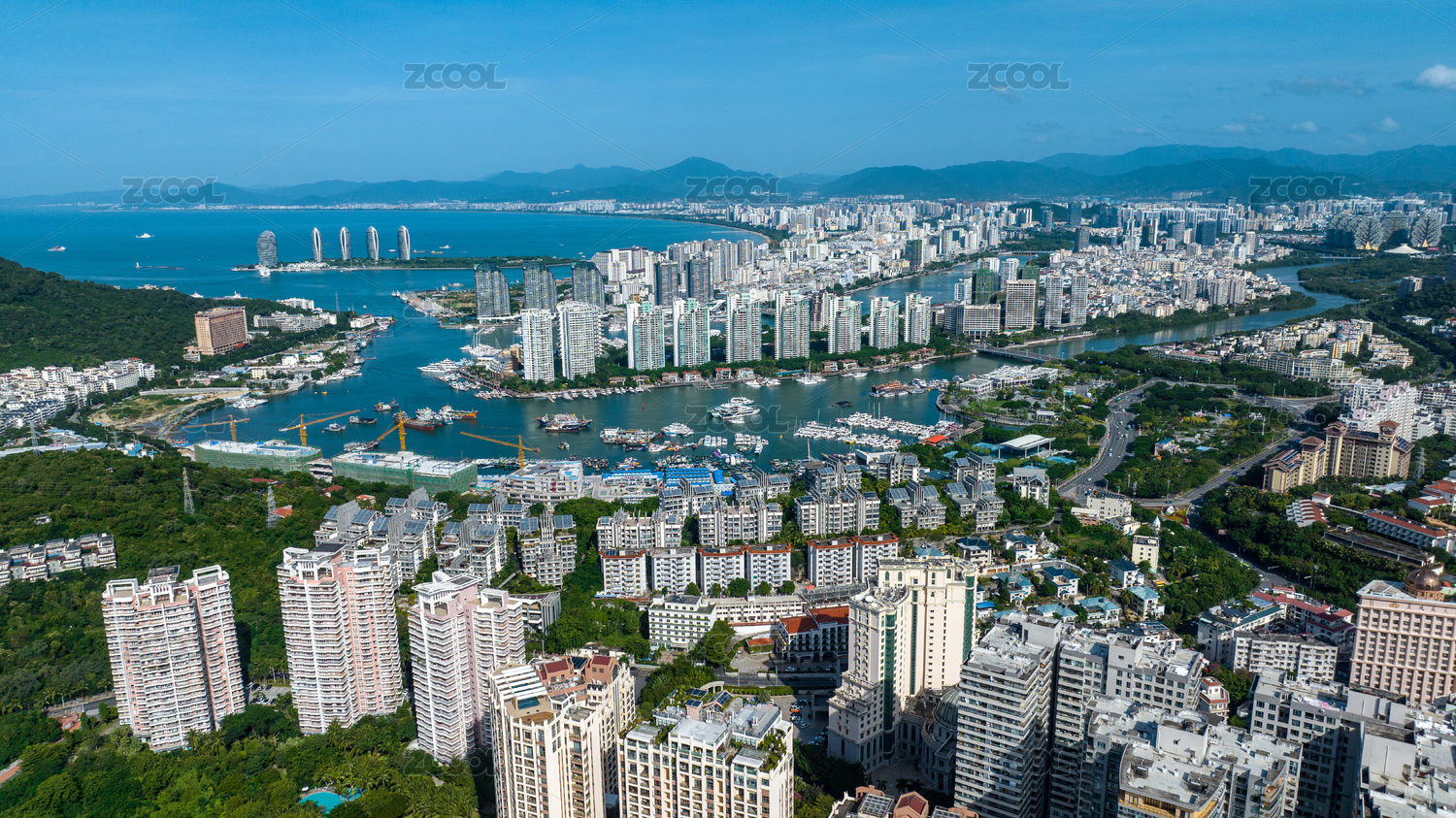 三亚三亚湾游艇码头及周边大东海城市风景航