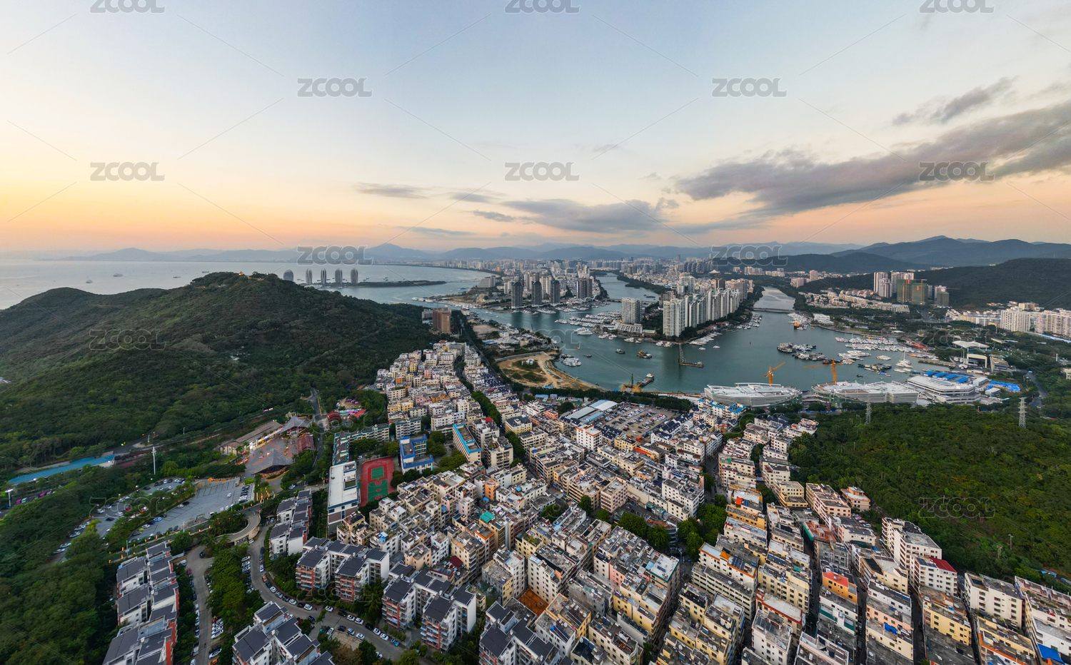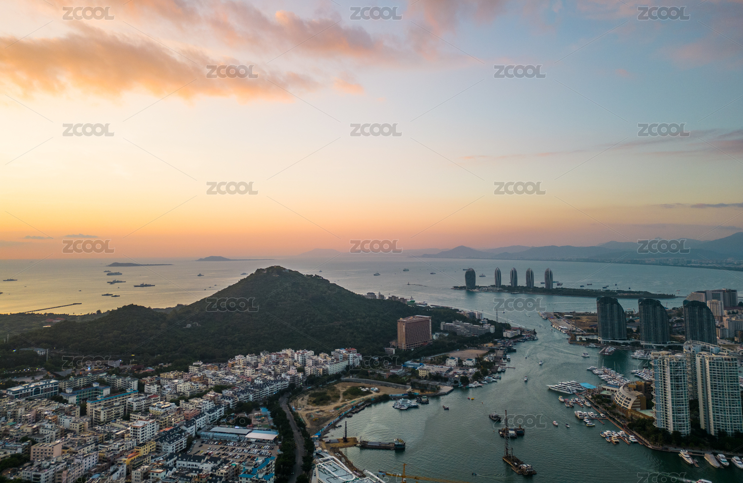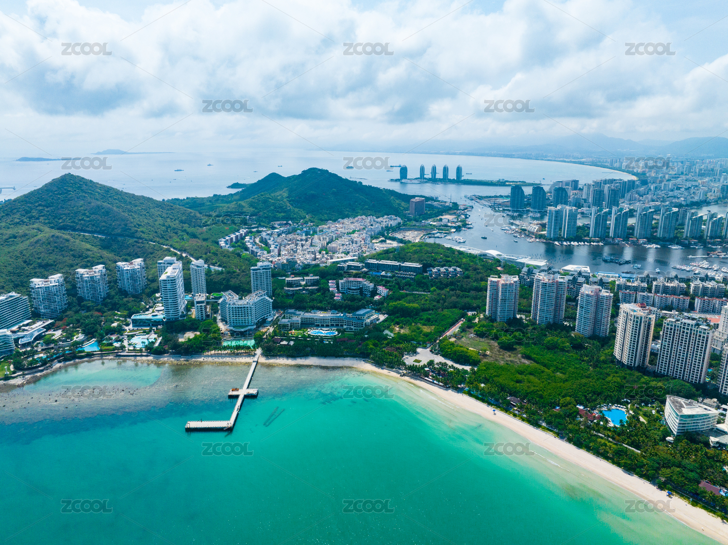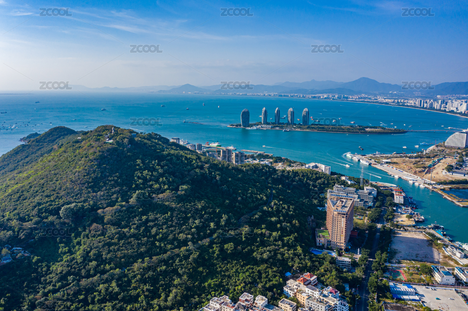 三亚三亚湾游艇码头及周边大东海城市风景航