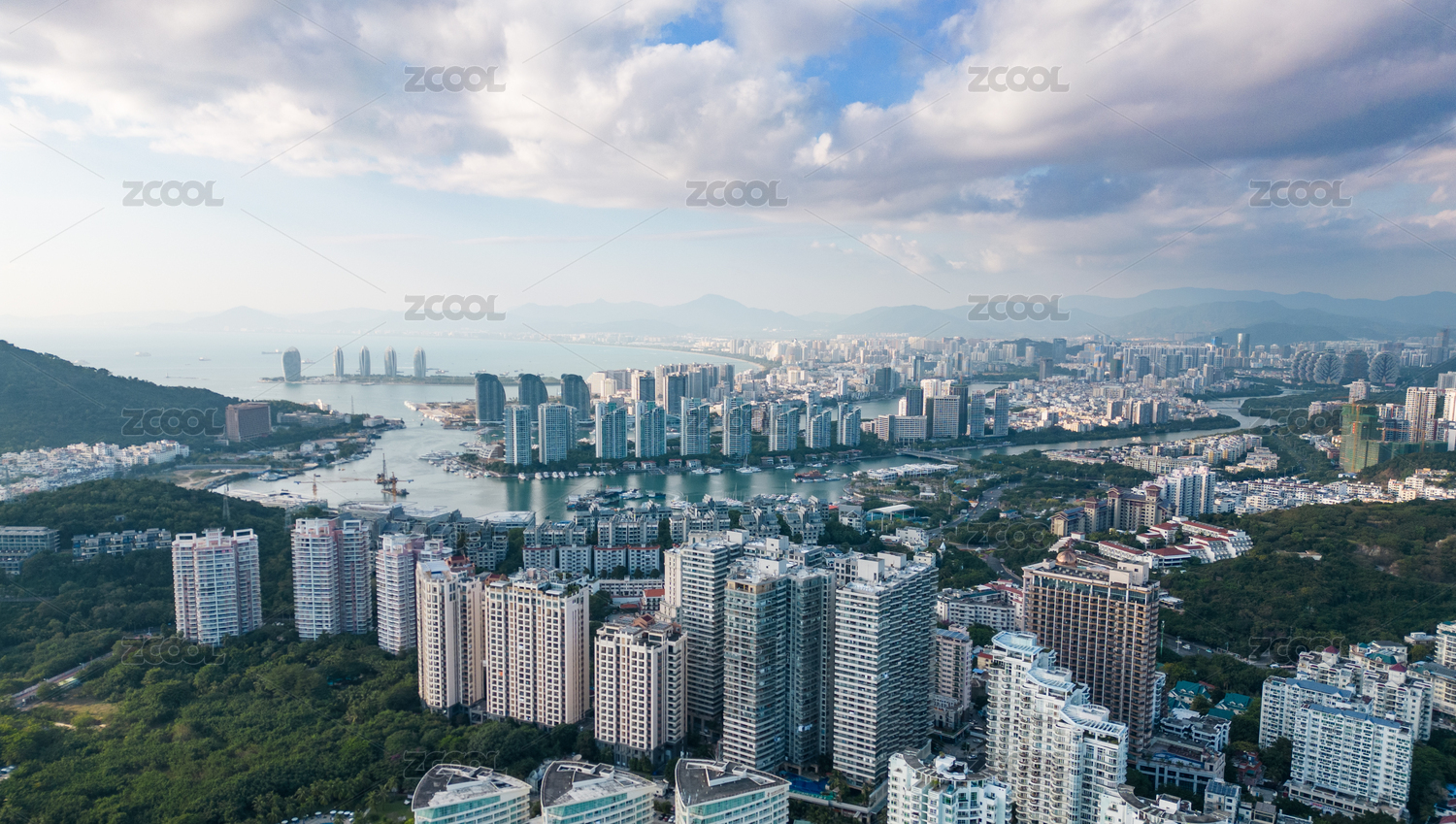 海南三亚临春岭深林公园山顶俯瞰城市建筑