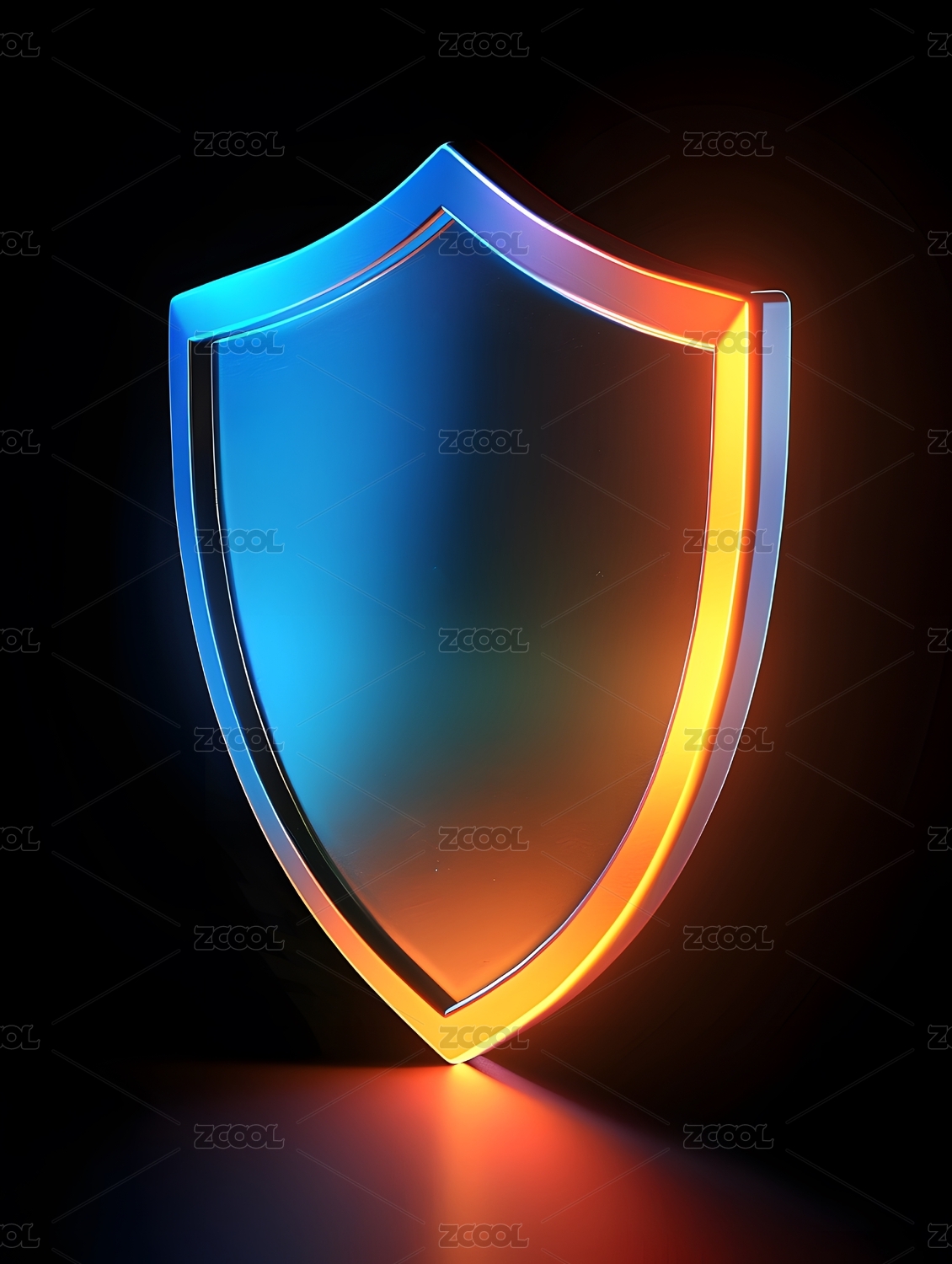 白底蓝色透明安全盾牌徽章标牌3D立体插画