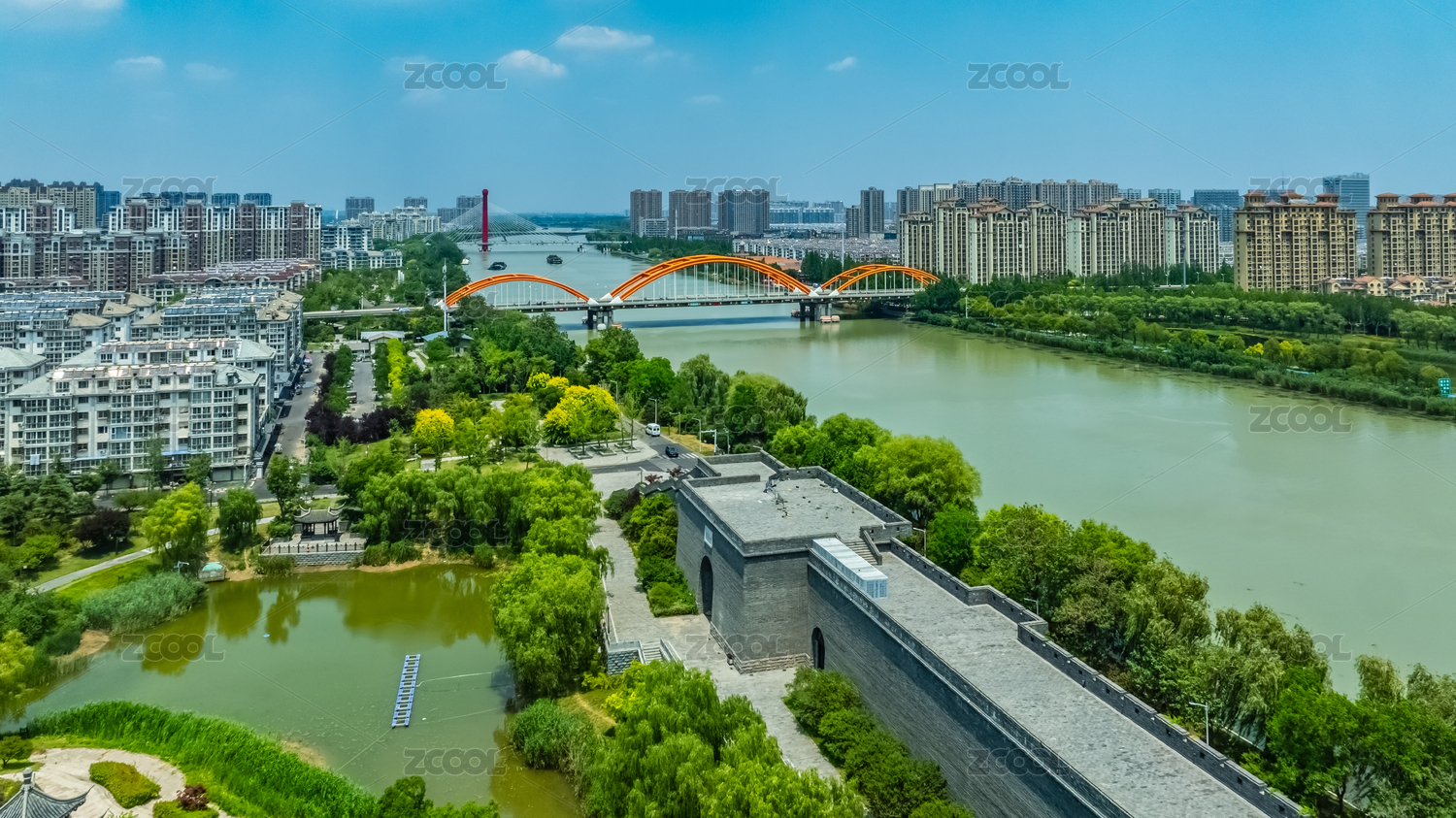 航拍河南郑州龙子湖公园湿地望龙西桥桥梁