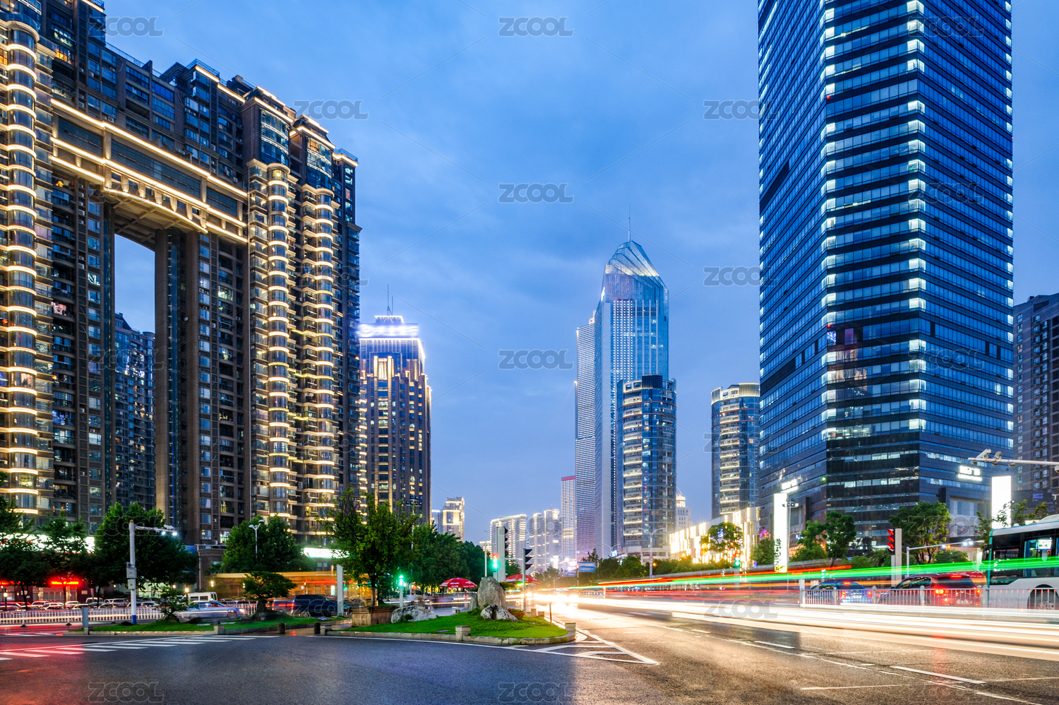 航拍中国河南郑州郑东新区CBD城市环形建筑群夕阳
