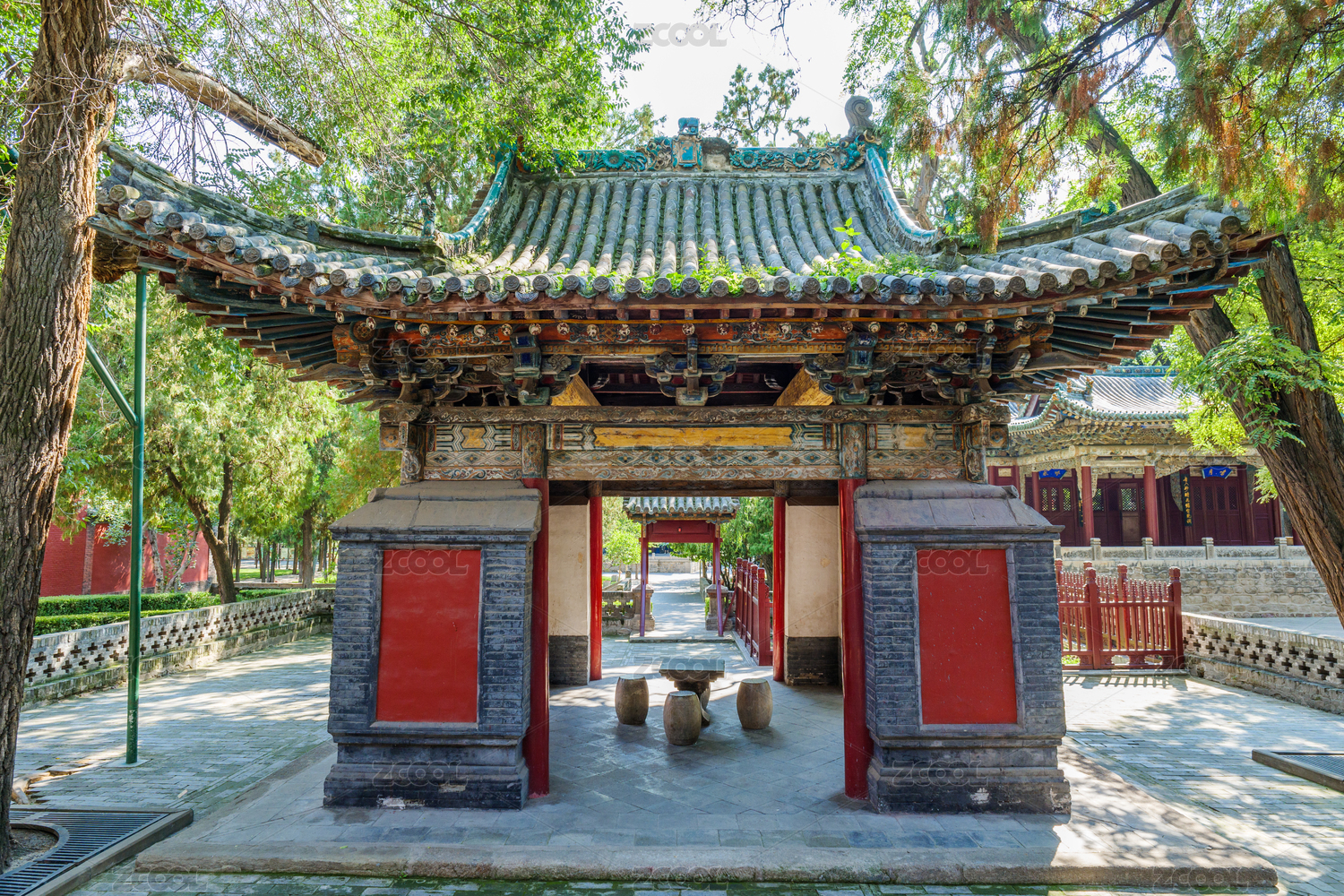 中国山西省太原市晋祠古柏树附近的东岳祠