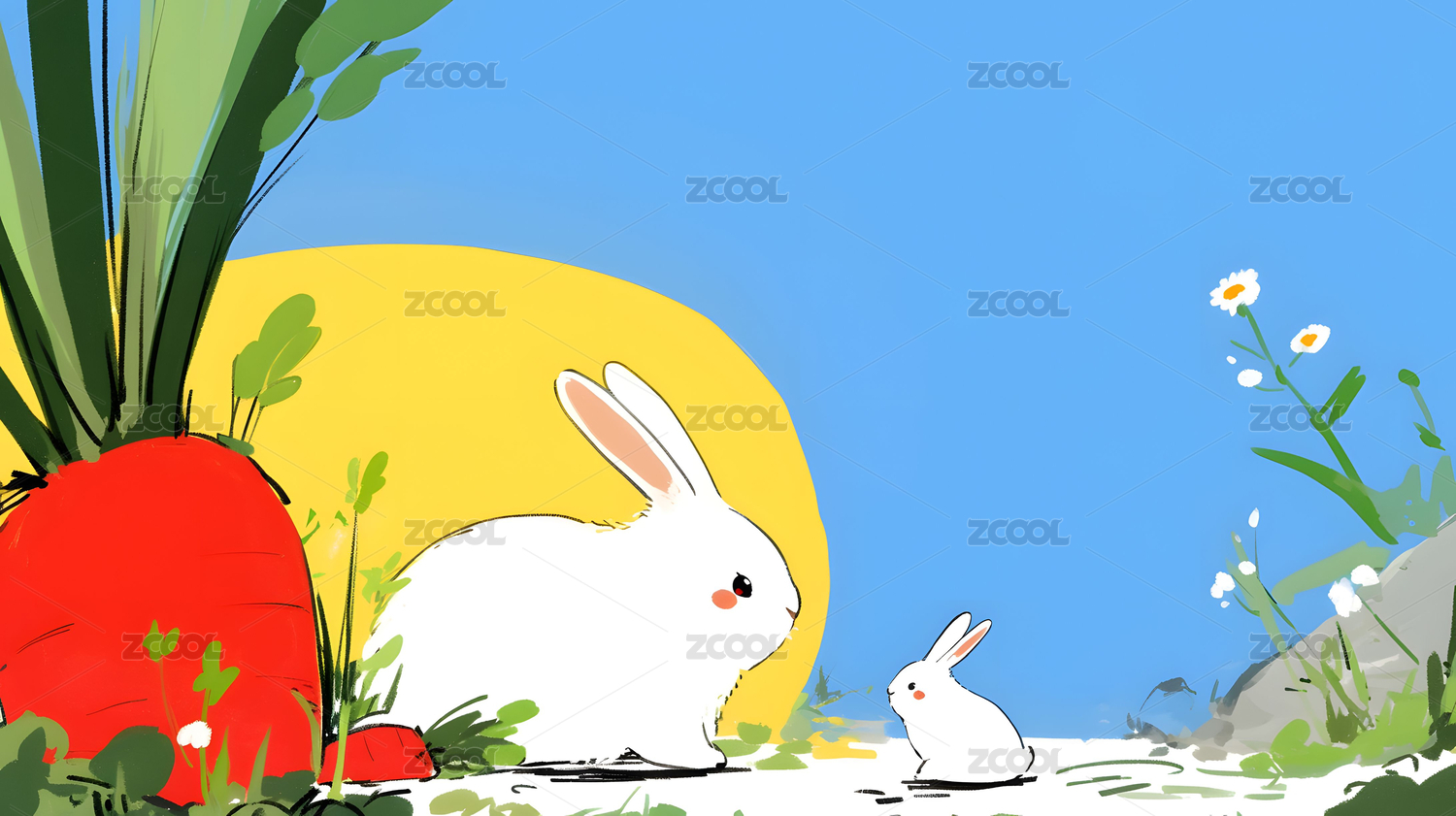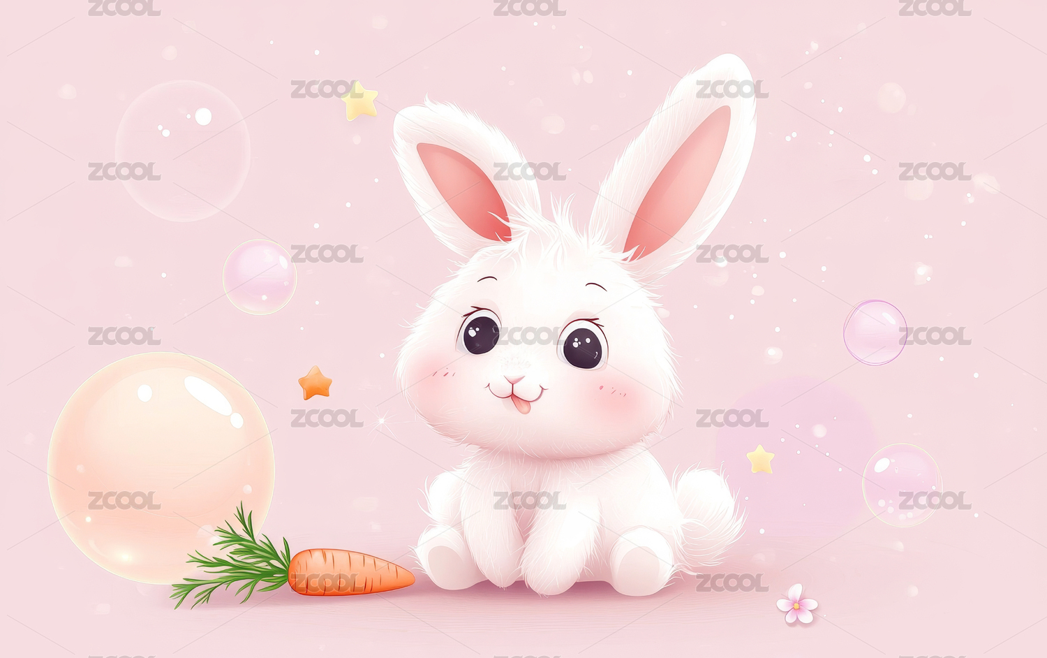 小兔子写实绘画风格动物主题壁纸3D卡通