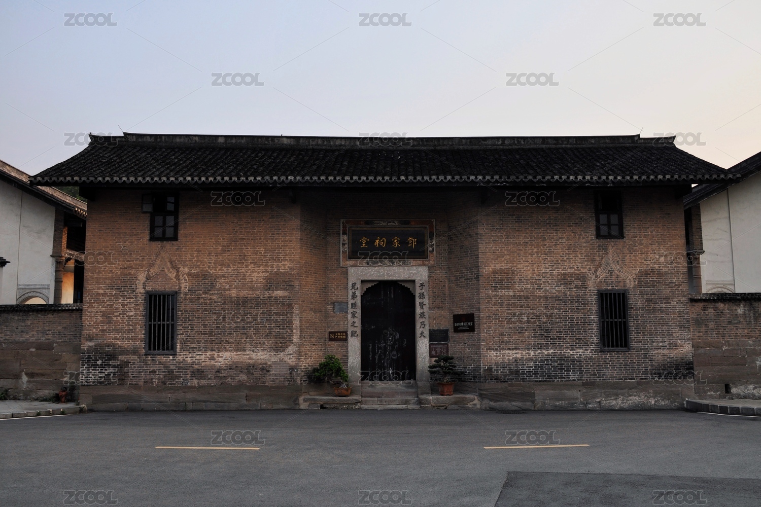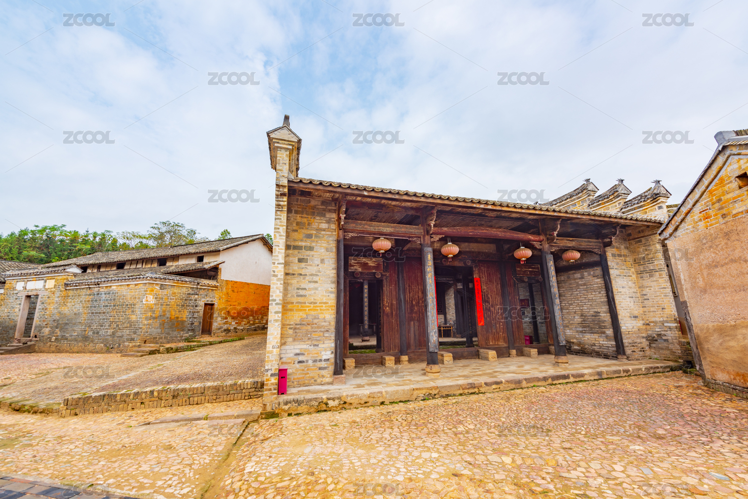 蓝天白云下三洲戴氏家庙正面,中国福建长汀