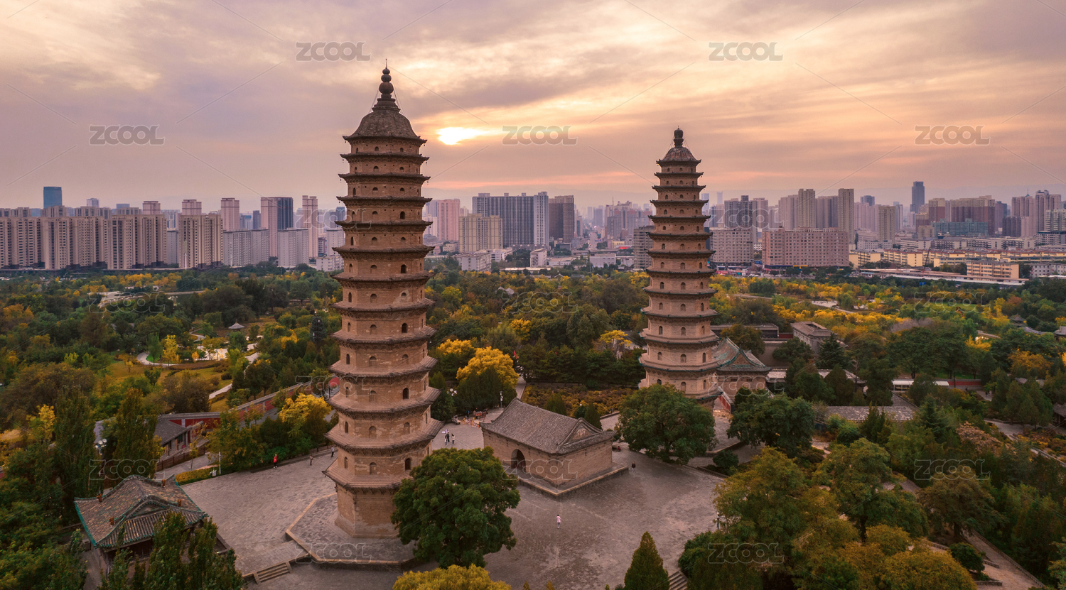 中国山西太原市郝庄双塔寺(永祚寺)风光