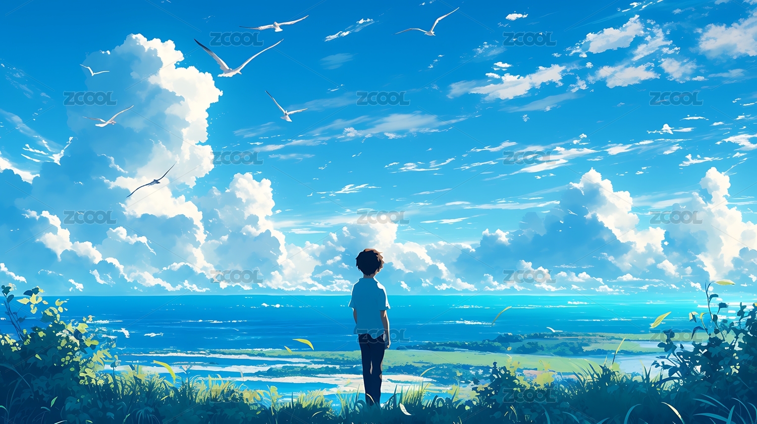 孤独,男孩,男生,背影,少年,天空,麦田,沉思,忧郁,希望