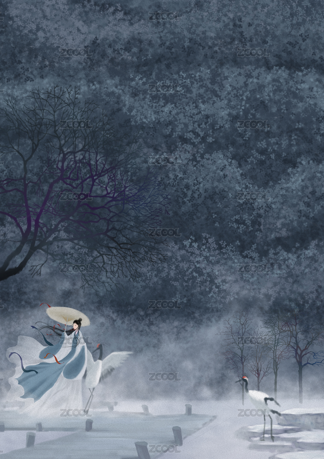 古风女子与仙鹤