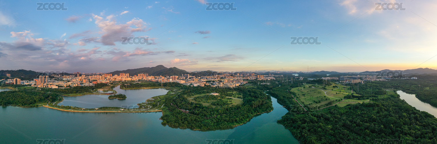 广州番禺大夫山森林公园湖泊树林航拍长图