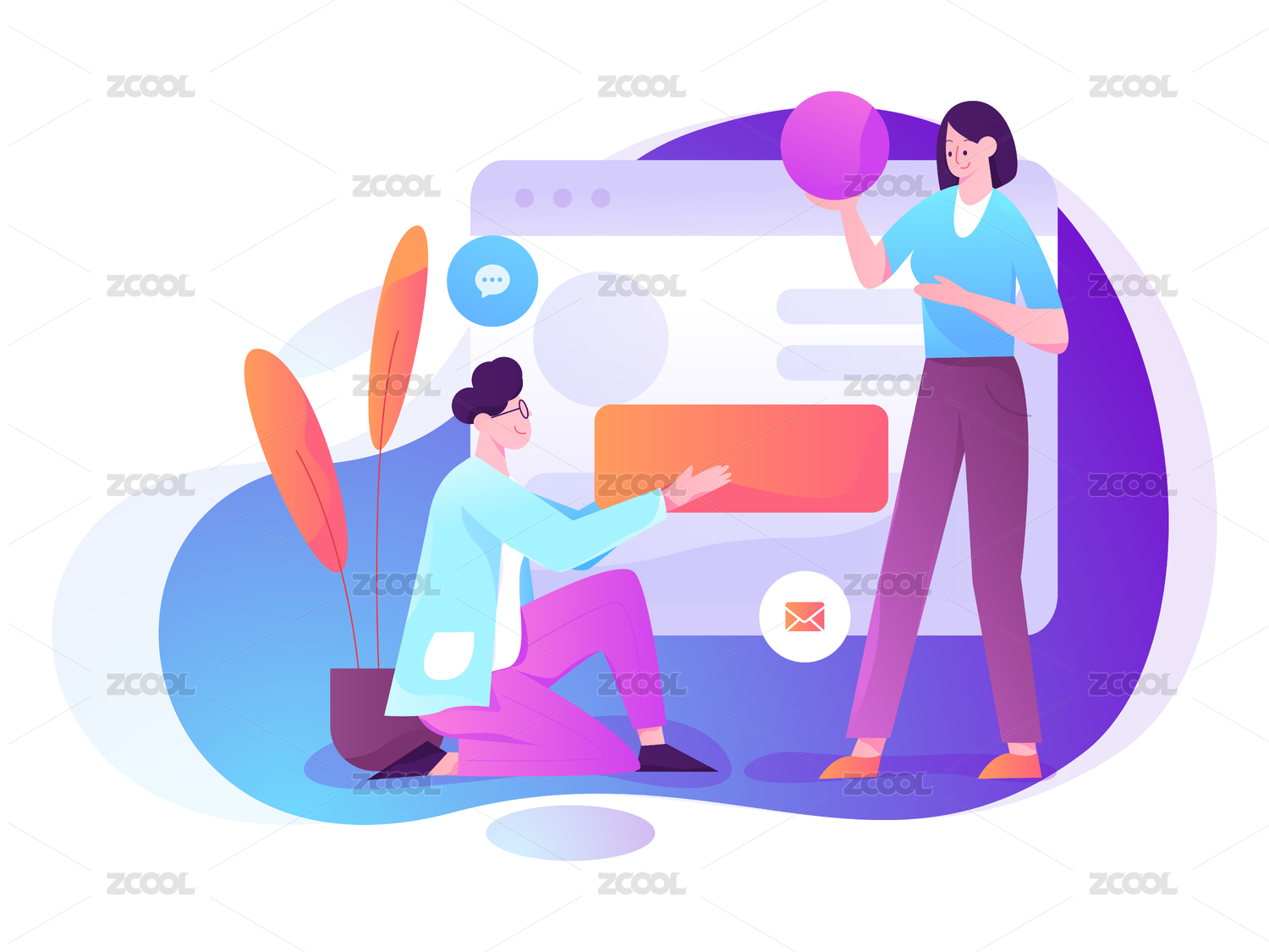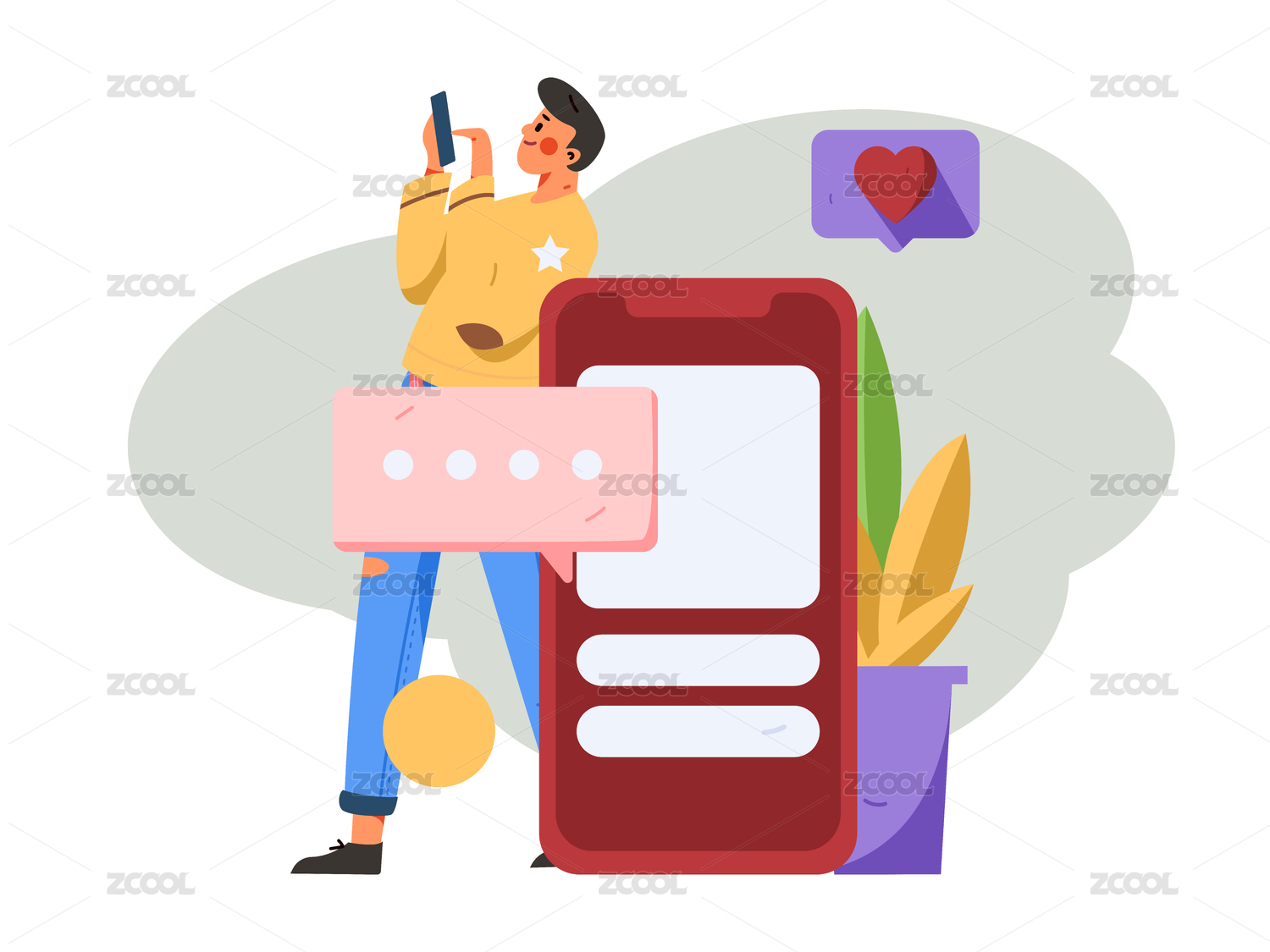 虚拟的人物社交沟通概念商业扁平矢量手绘插