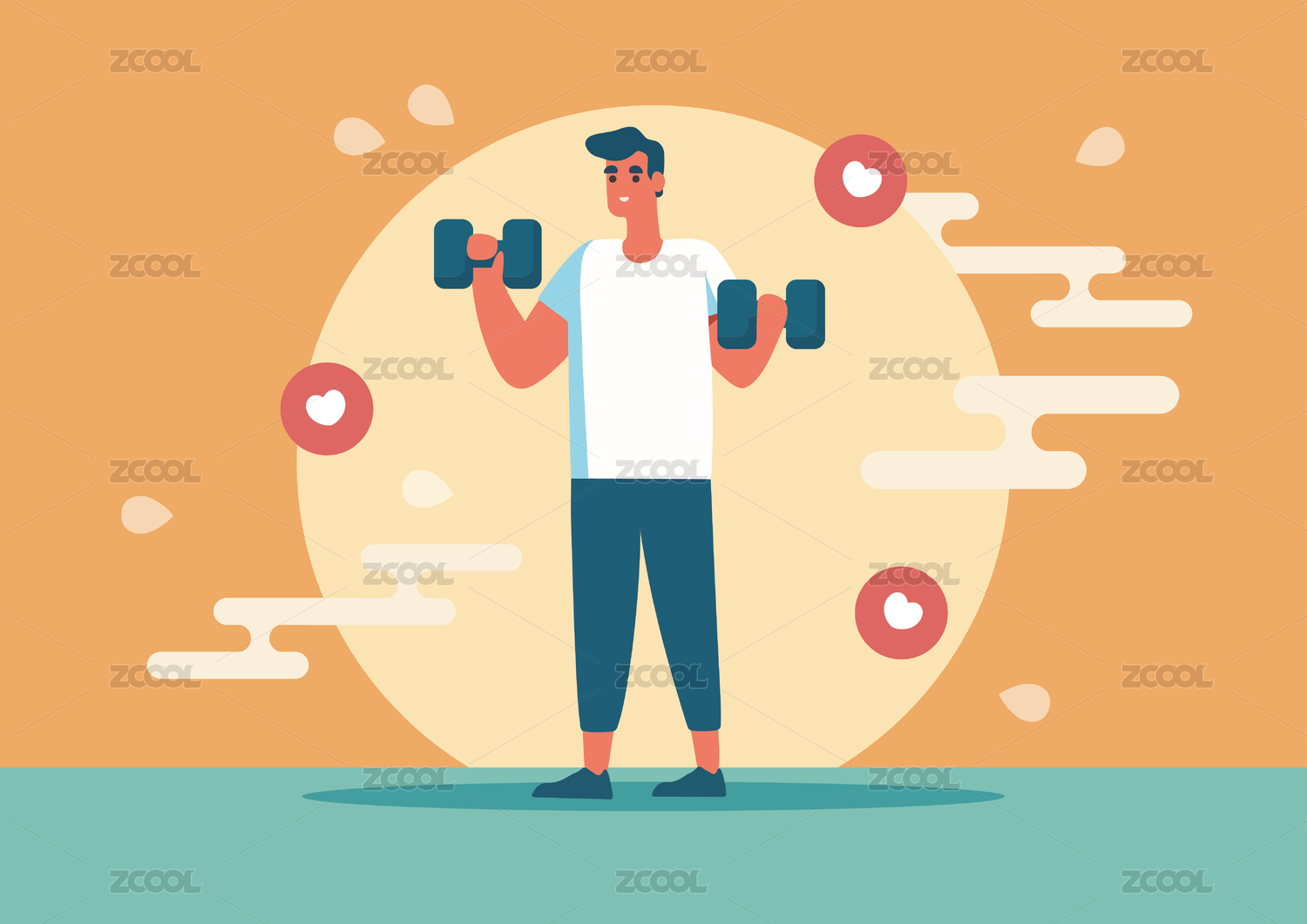 AIGC202401,体育运动,运动,锻炼,人,插画,健身,卡通