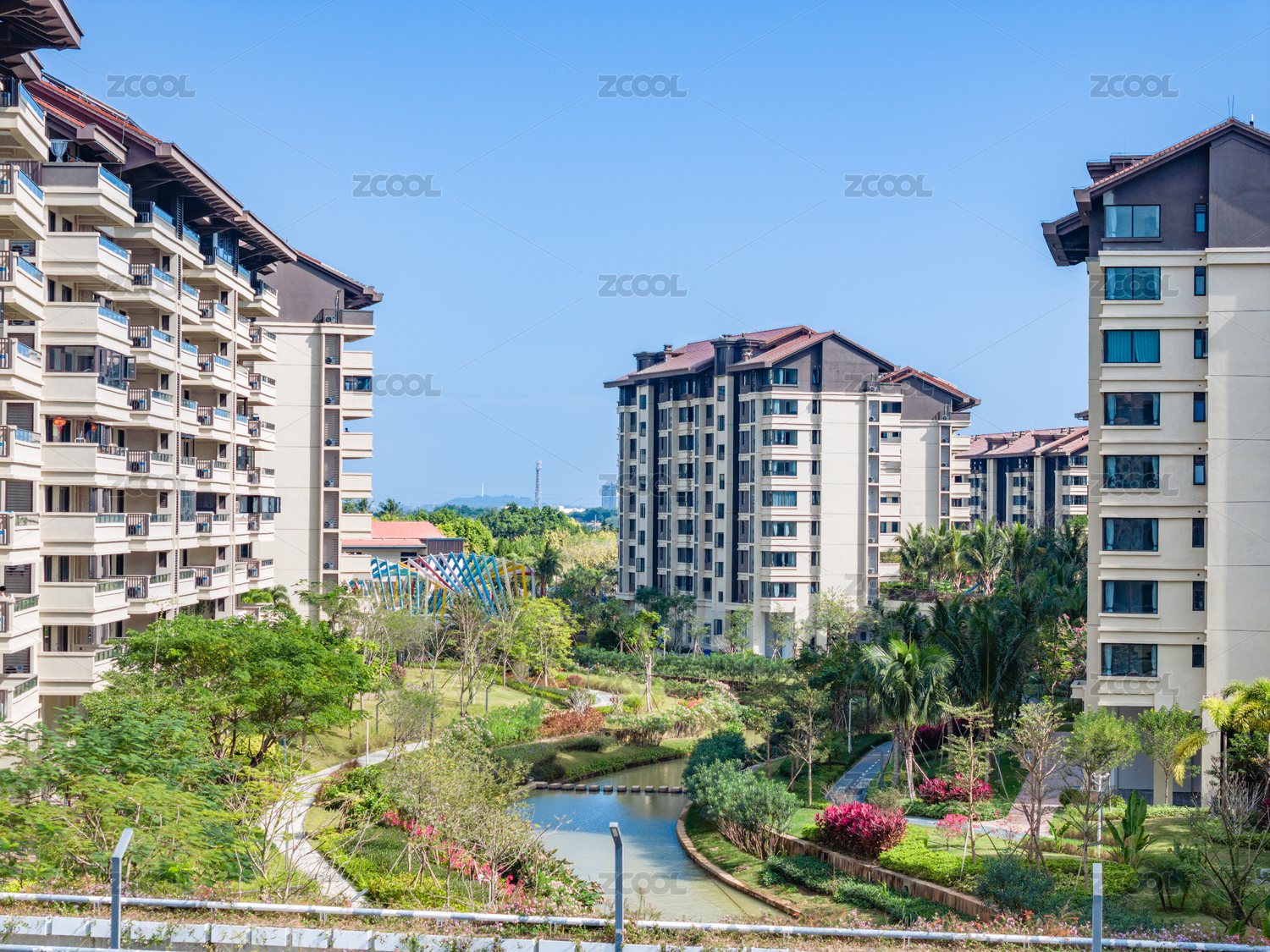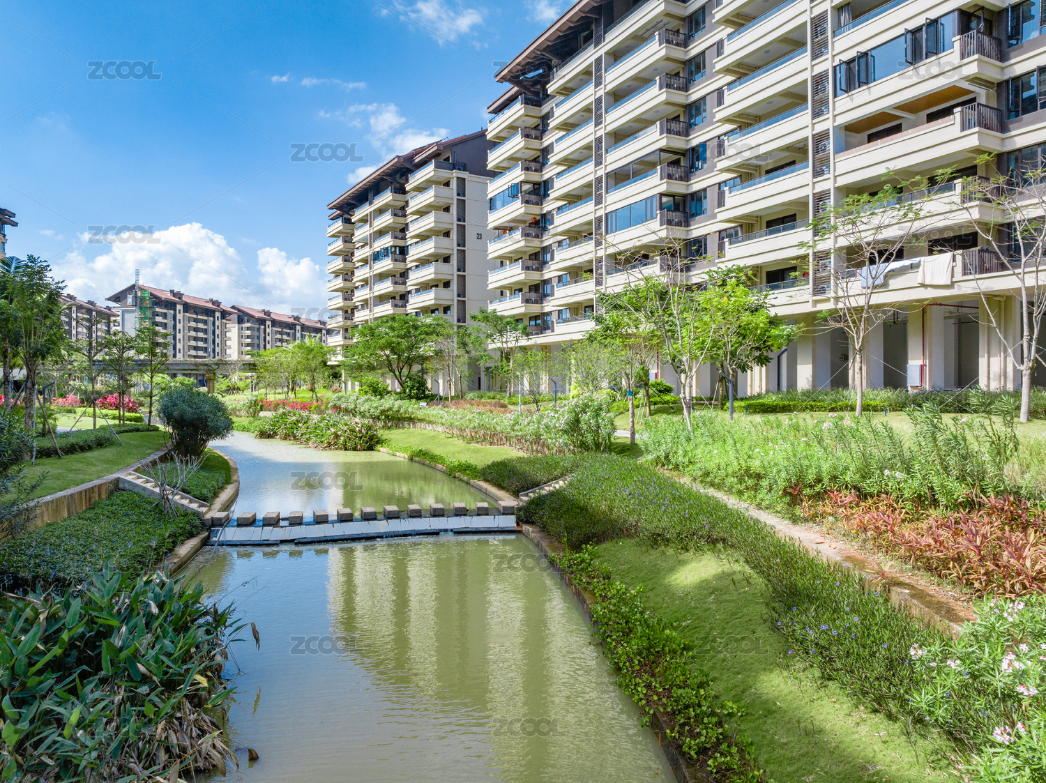 园林,景观设计,河流,小区,草地,草坪,城市,多层住宅,房地产,高层