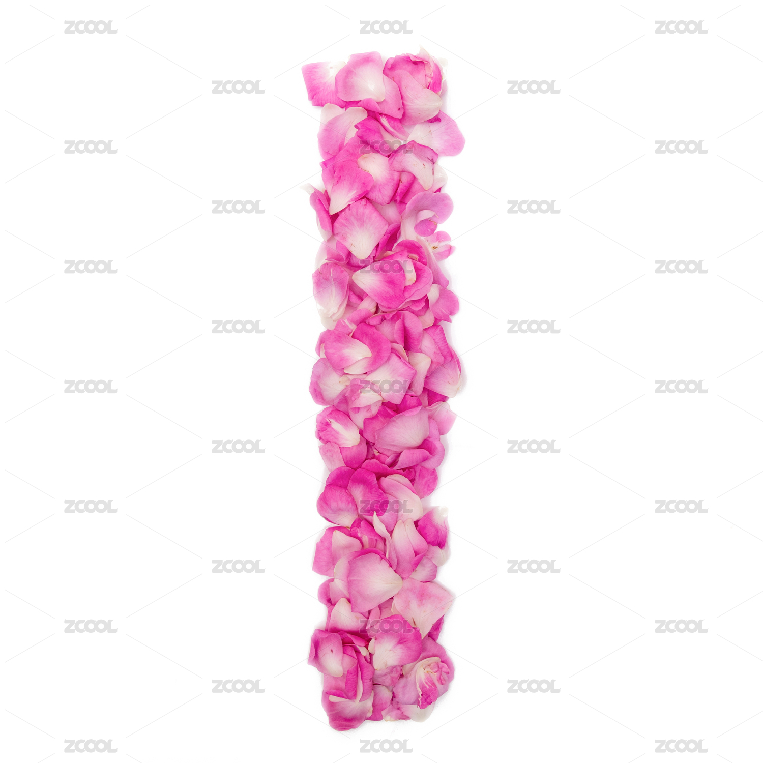 粉色的鲜花花瓣拼出来的英文字母i或数字1