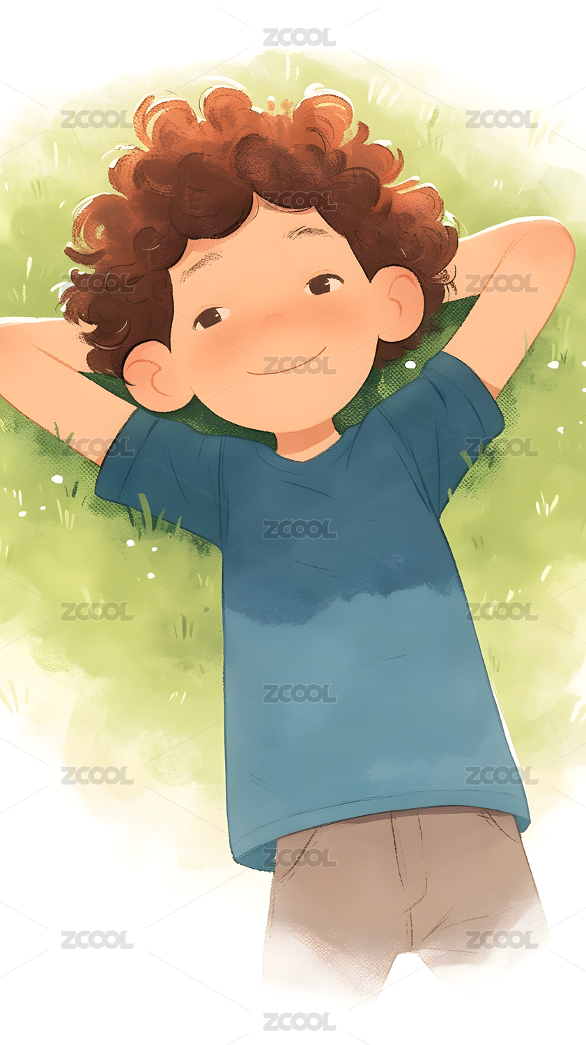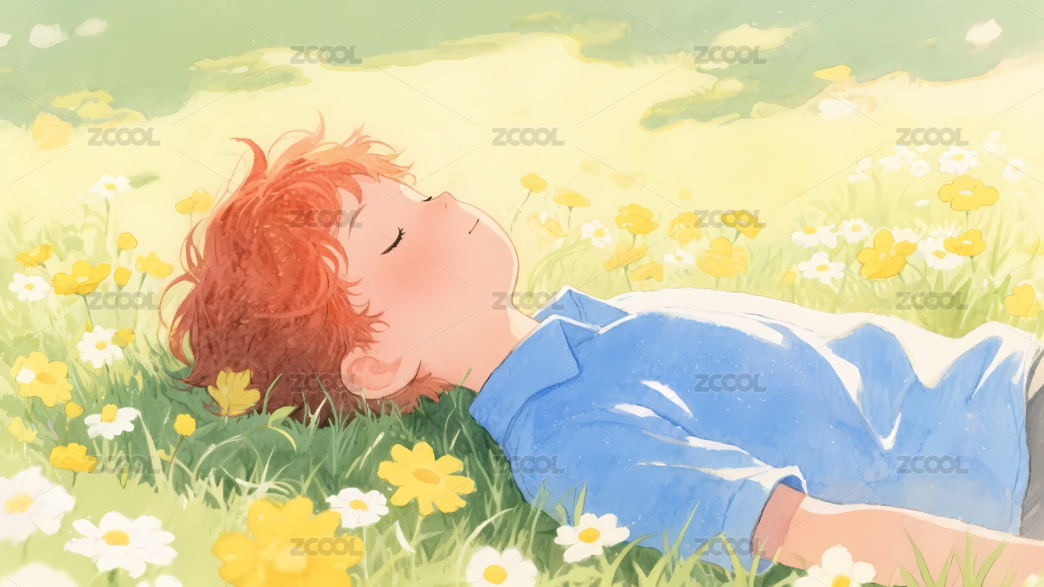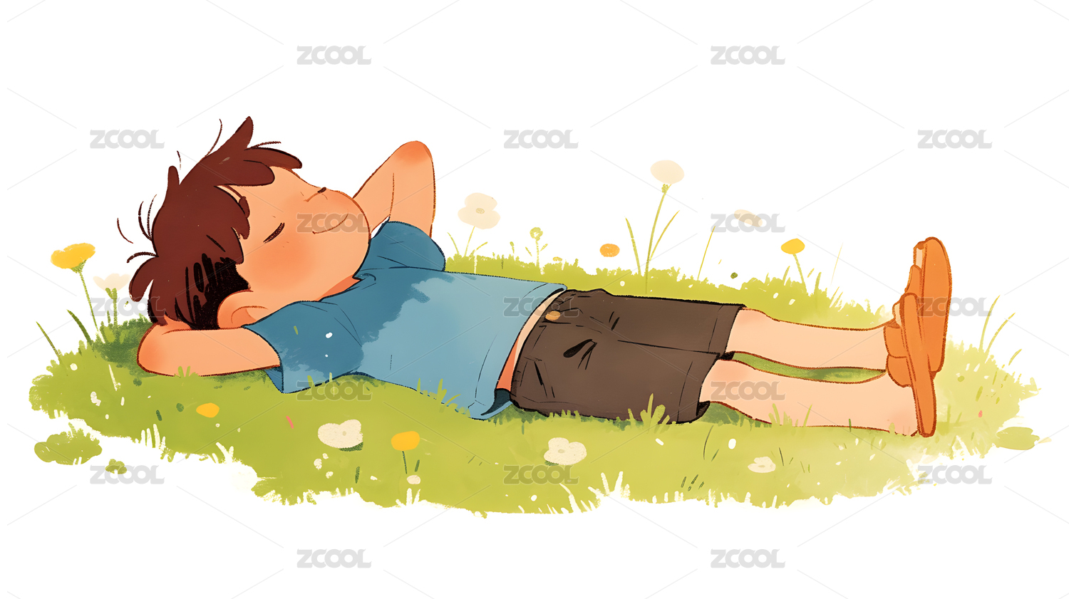 六一儿童节孩子户外游乐园睡觉童年成长插画