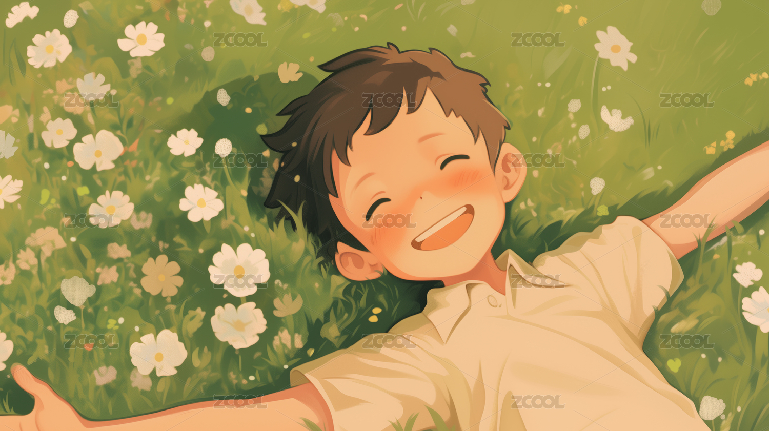 孩子,儿童,草地,人,可爱,人物,卡通,插画