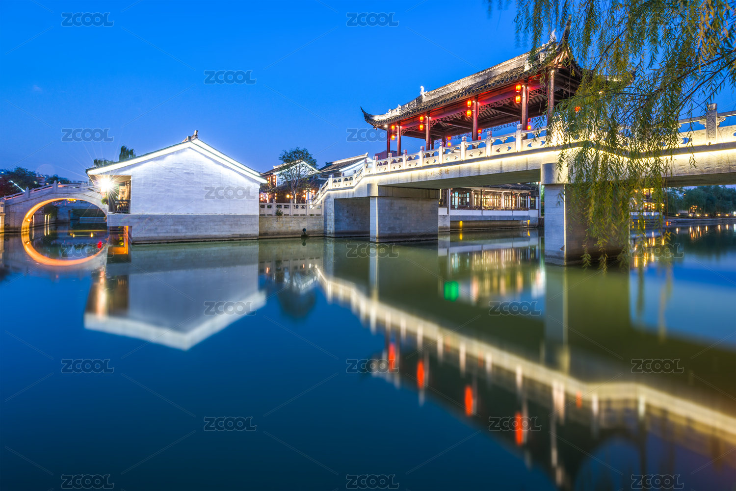 中国江苏苏州锦溪古镇古廊桥夜景