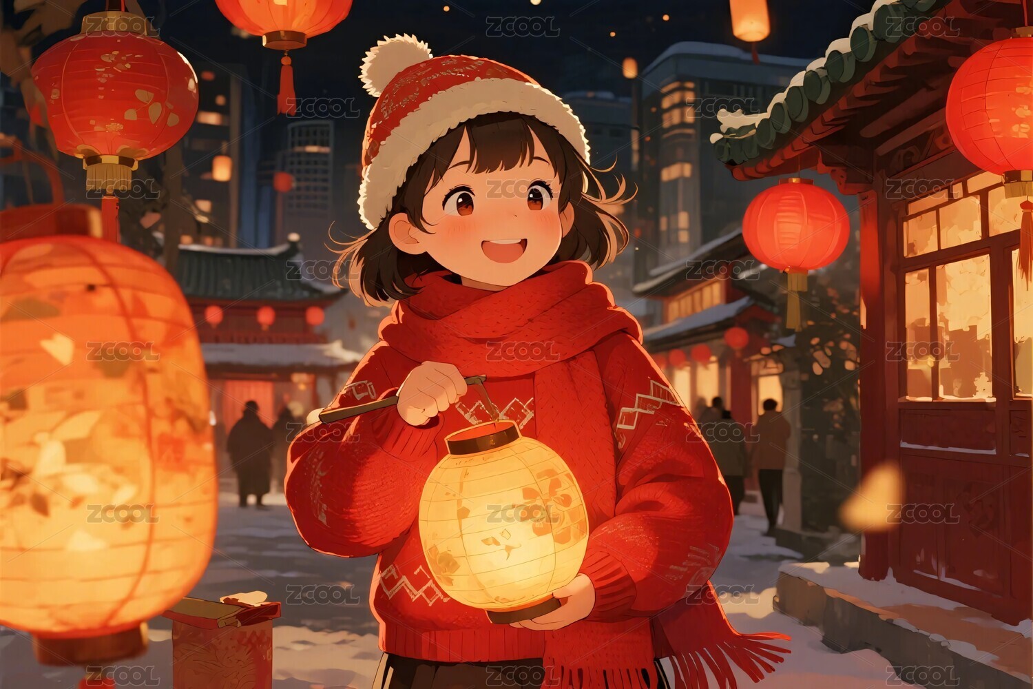 春节,新年,节日,灯笼,花灯,元宵节,中秋节,卡通,插画,人