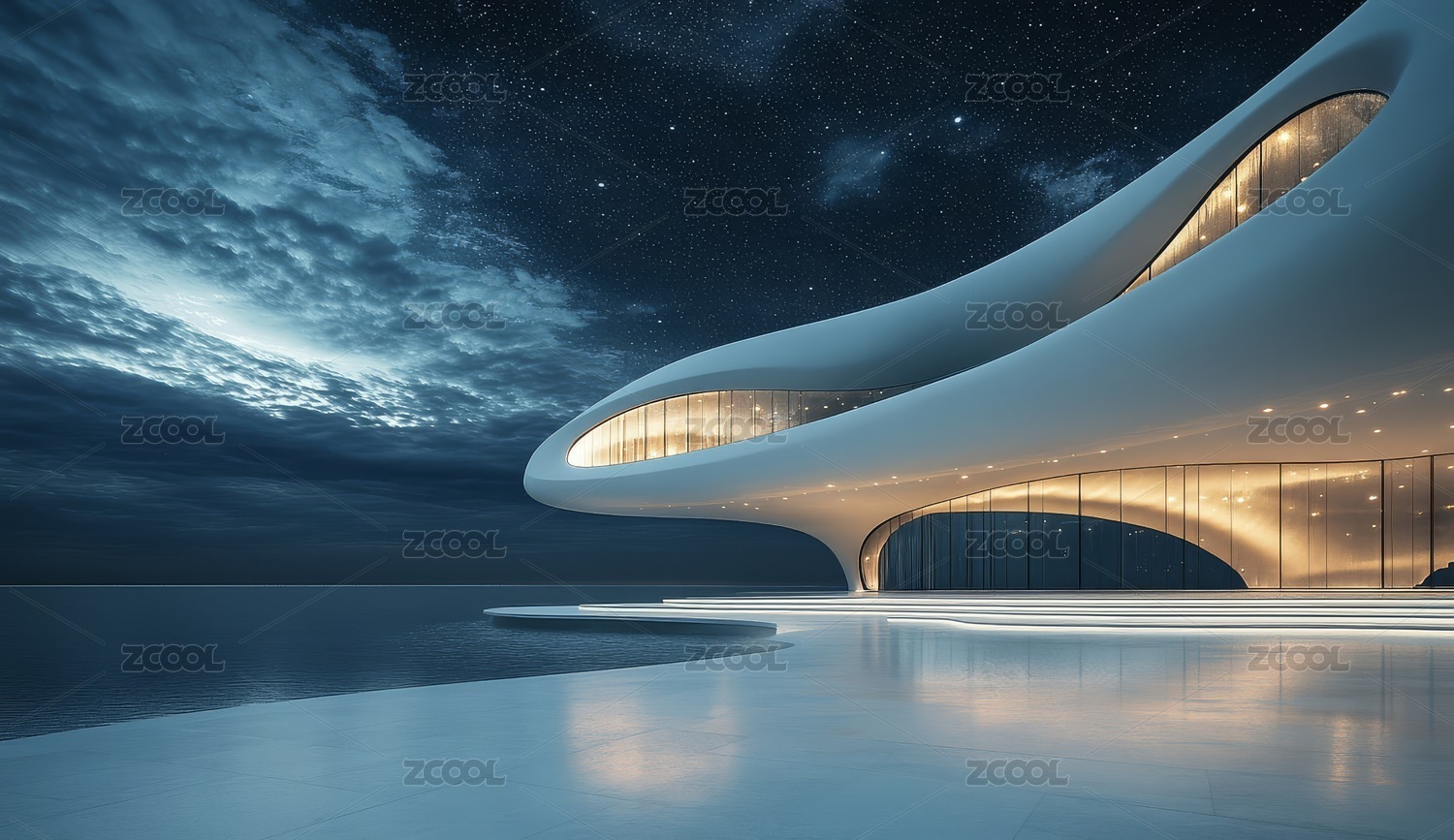 夜晚星空下的现代化建筑外观