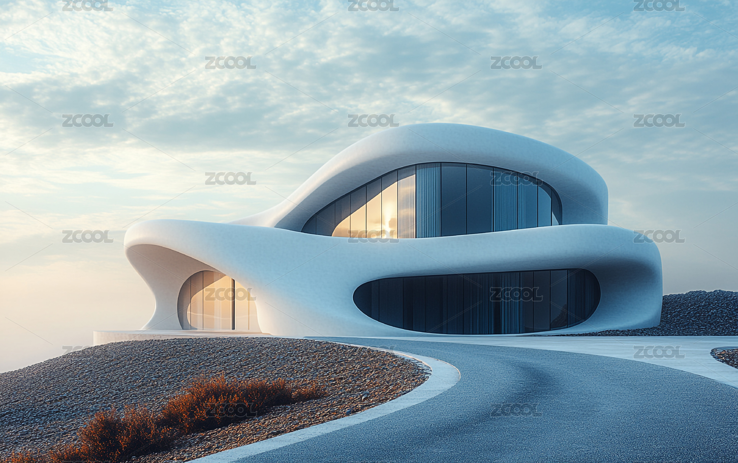 公路旁现代化的建筑概念设计