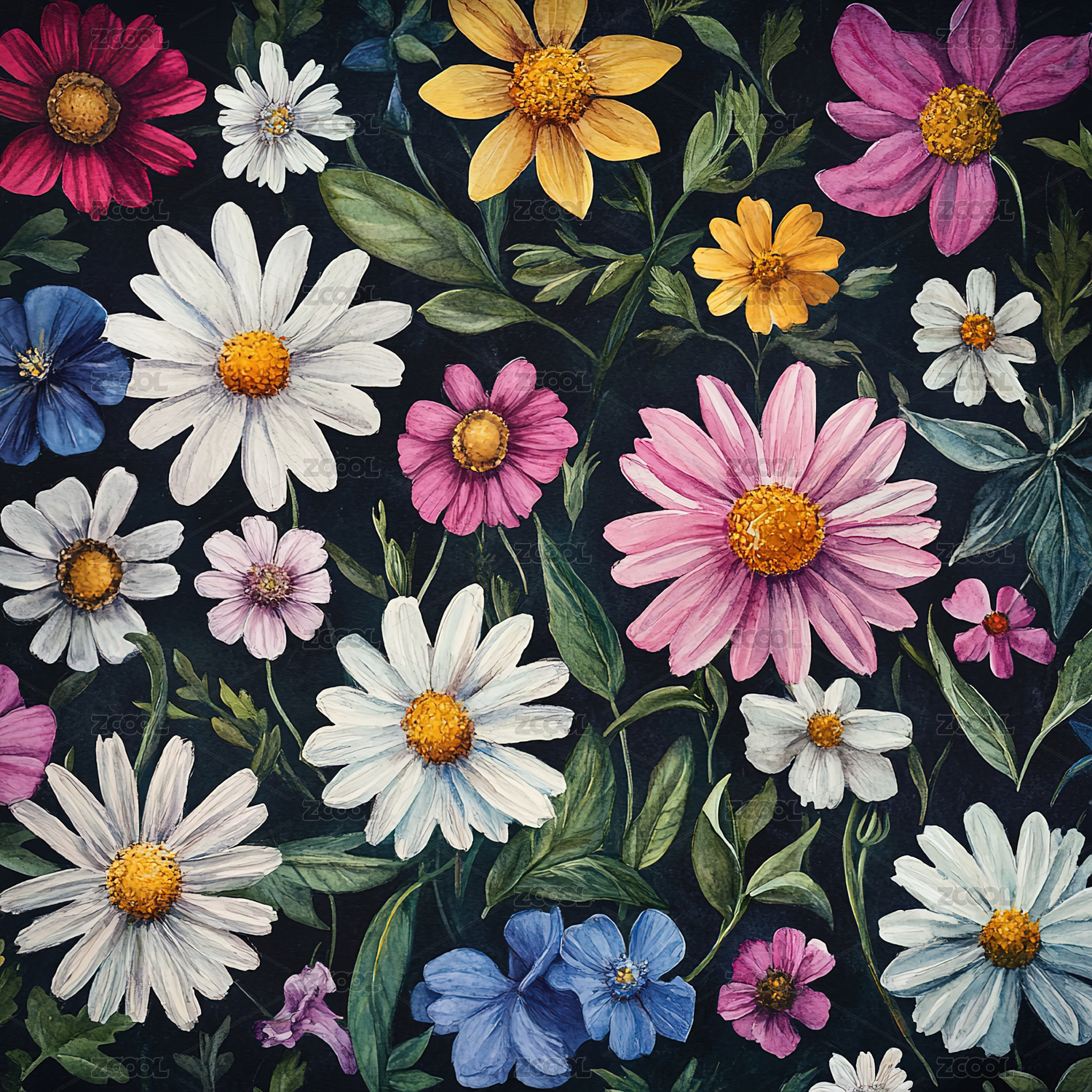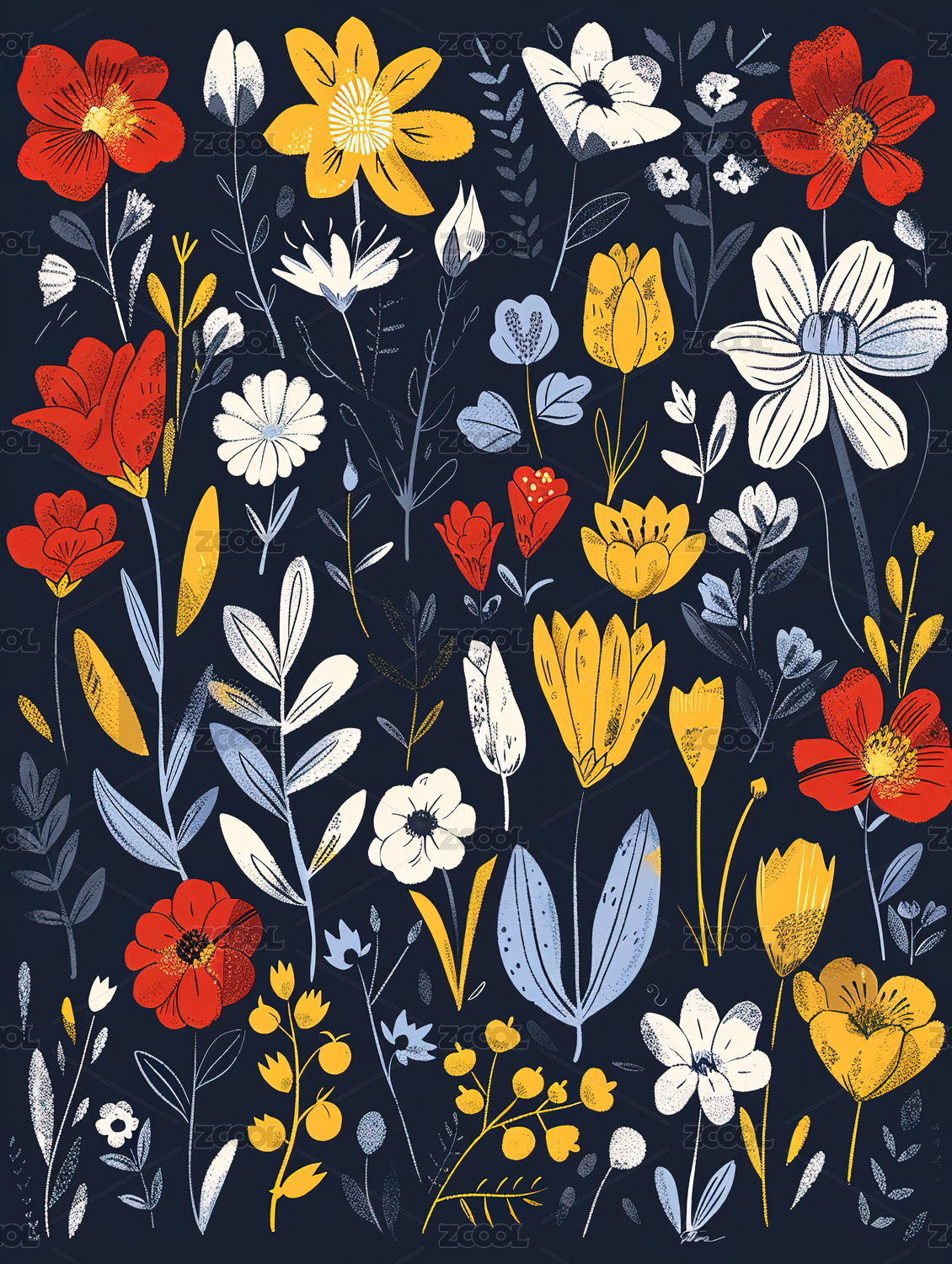 彩色线条花卉重复无缝图案纺织品装饰背景