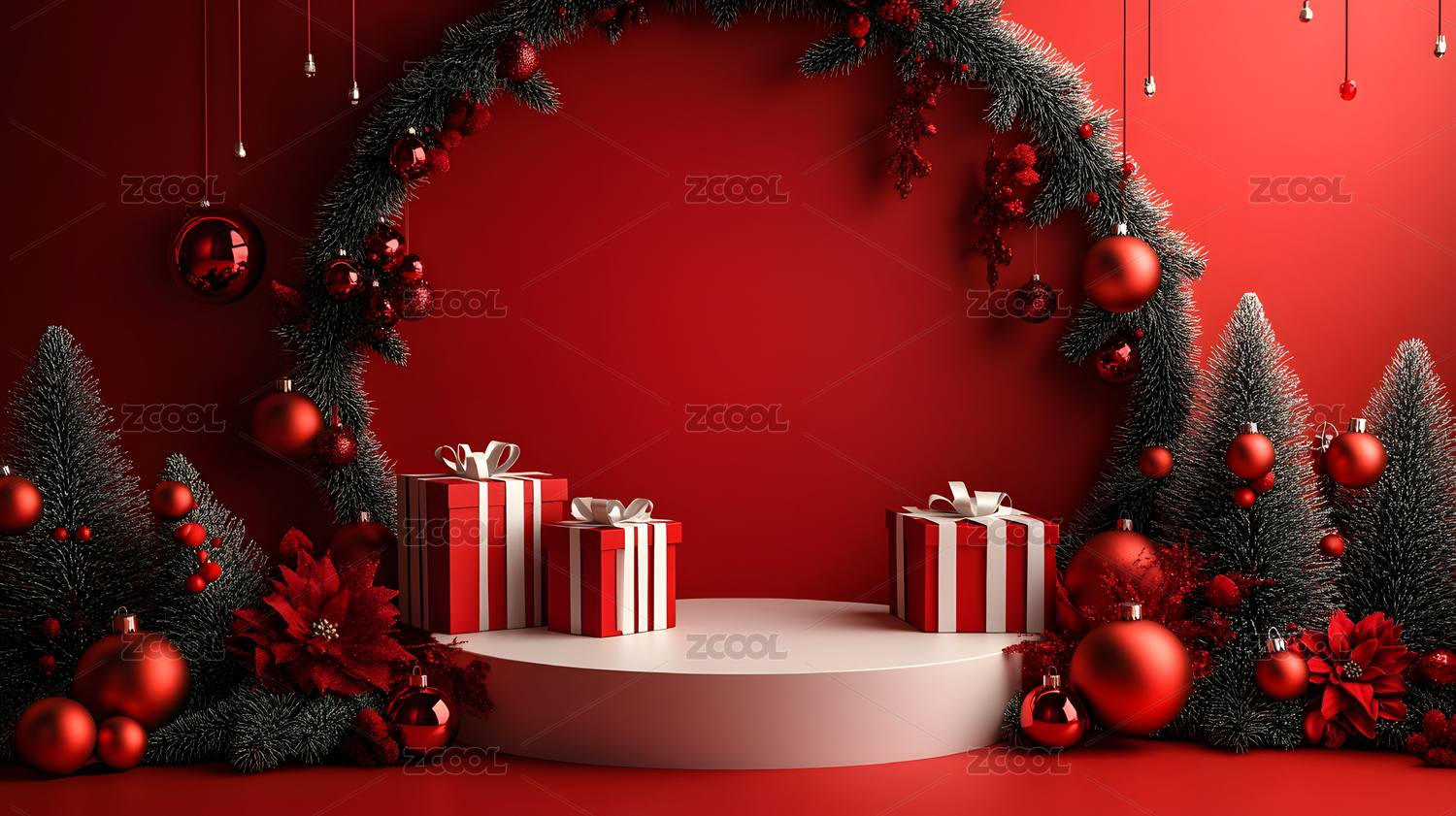 3D渲染红色圣诞节主题电商产品展台背景