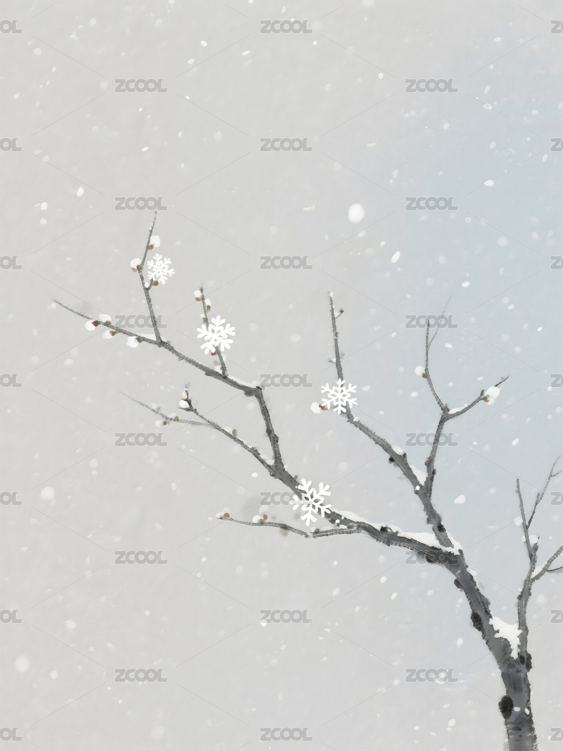 古典,国风,背景,插画,节气,树木,下雪,大雪,雪景,立冬
