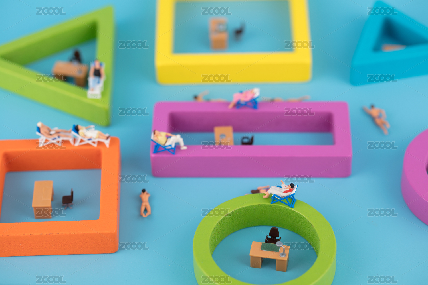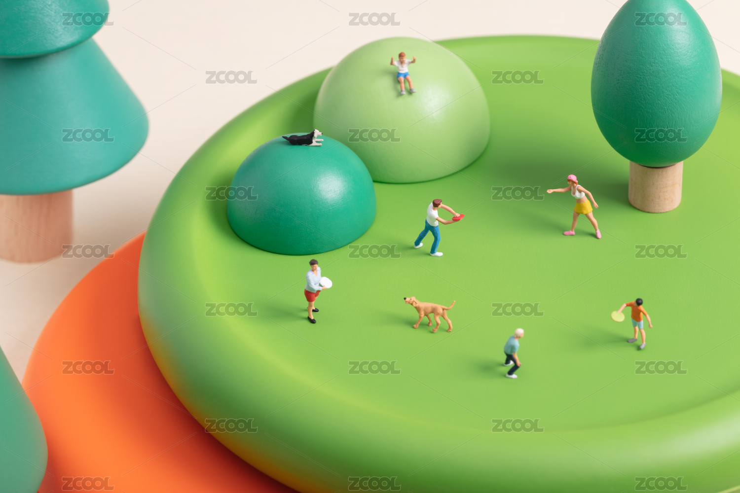 微缩创意城市公园绿地上玩儿飞盘的人群