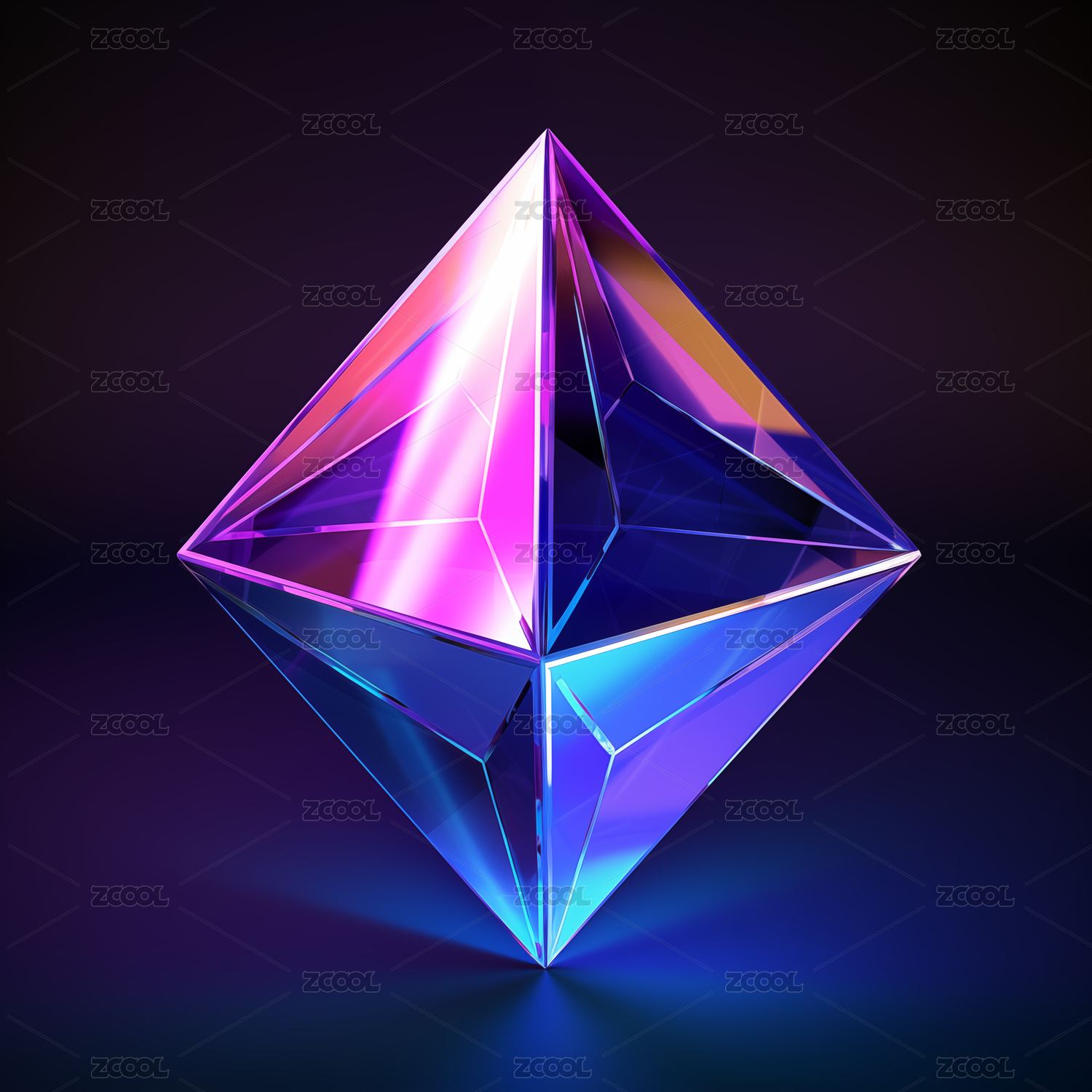数码科技红蓝紫八面体抽象图形海报网页背景