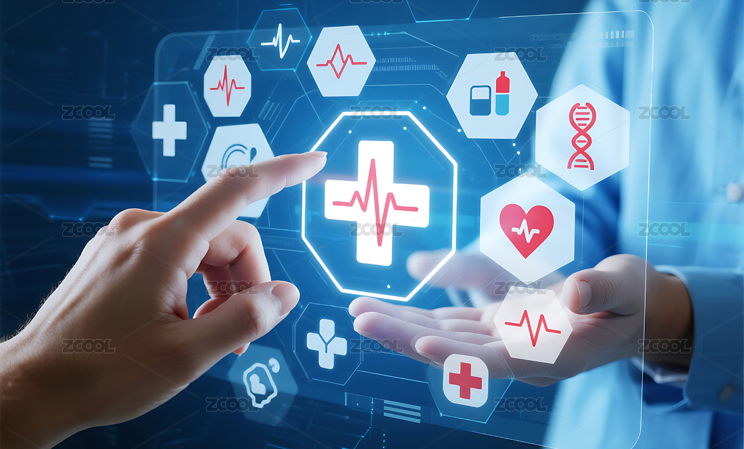 医生手托医疗图标象征健康科技