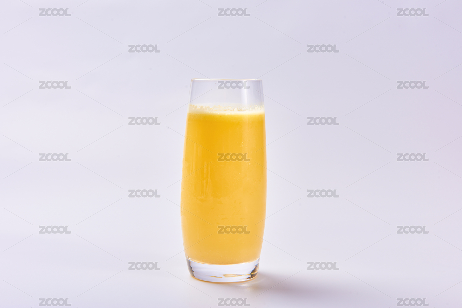 玻璃杯里的黄色鲜榨芒果汁饮品饮料