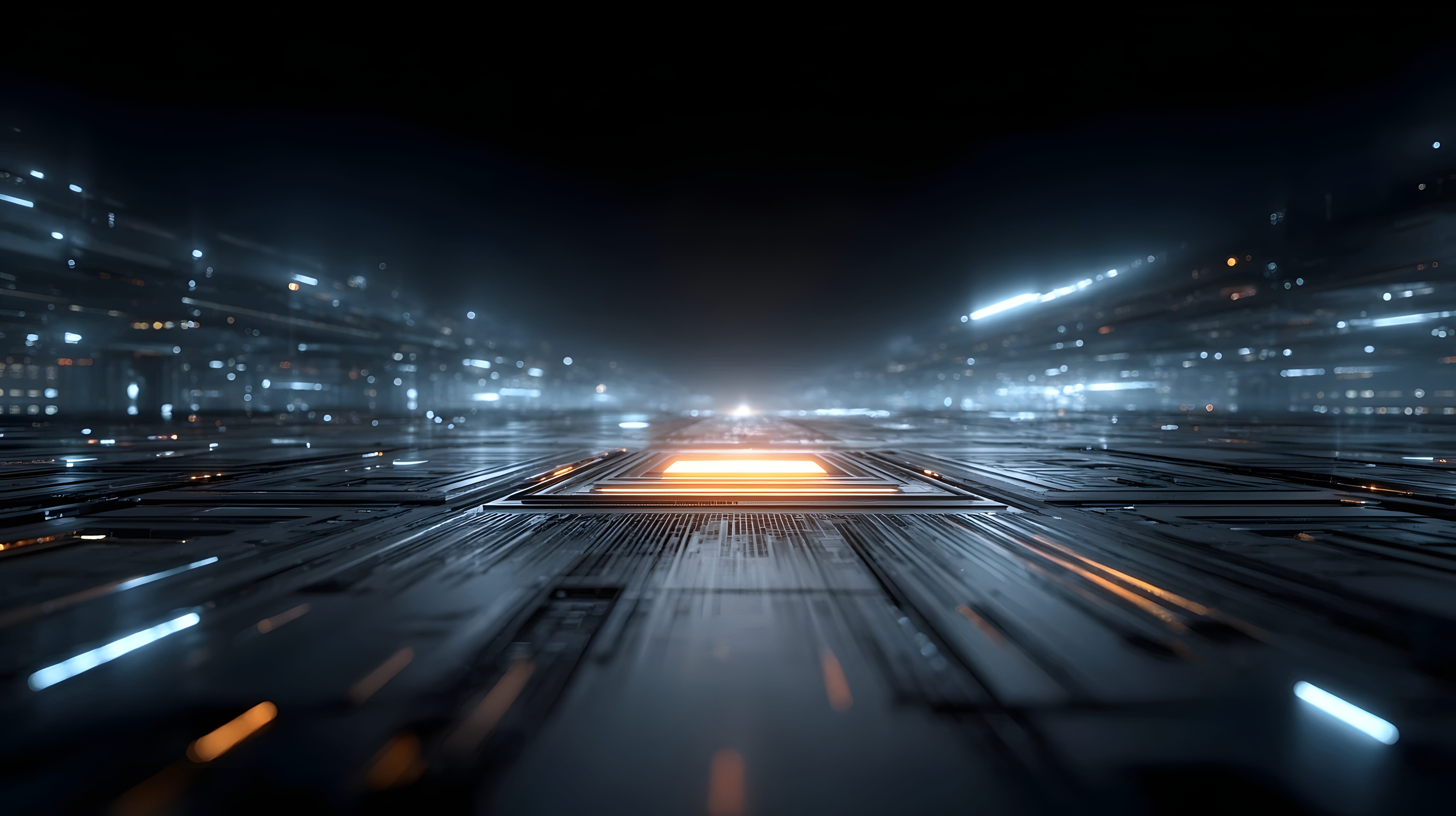 未来城市夜景科技感,蓝色橙色光影