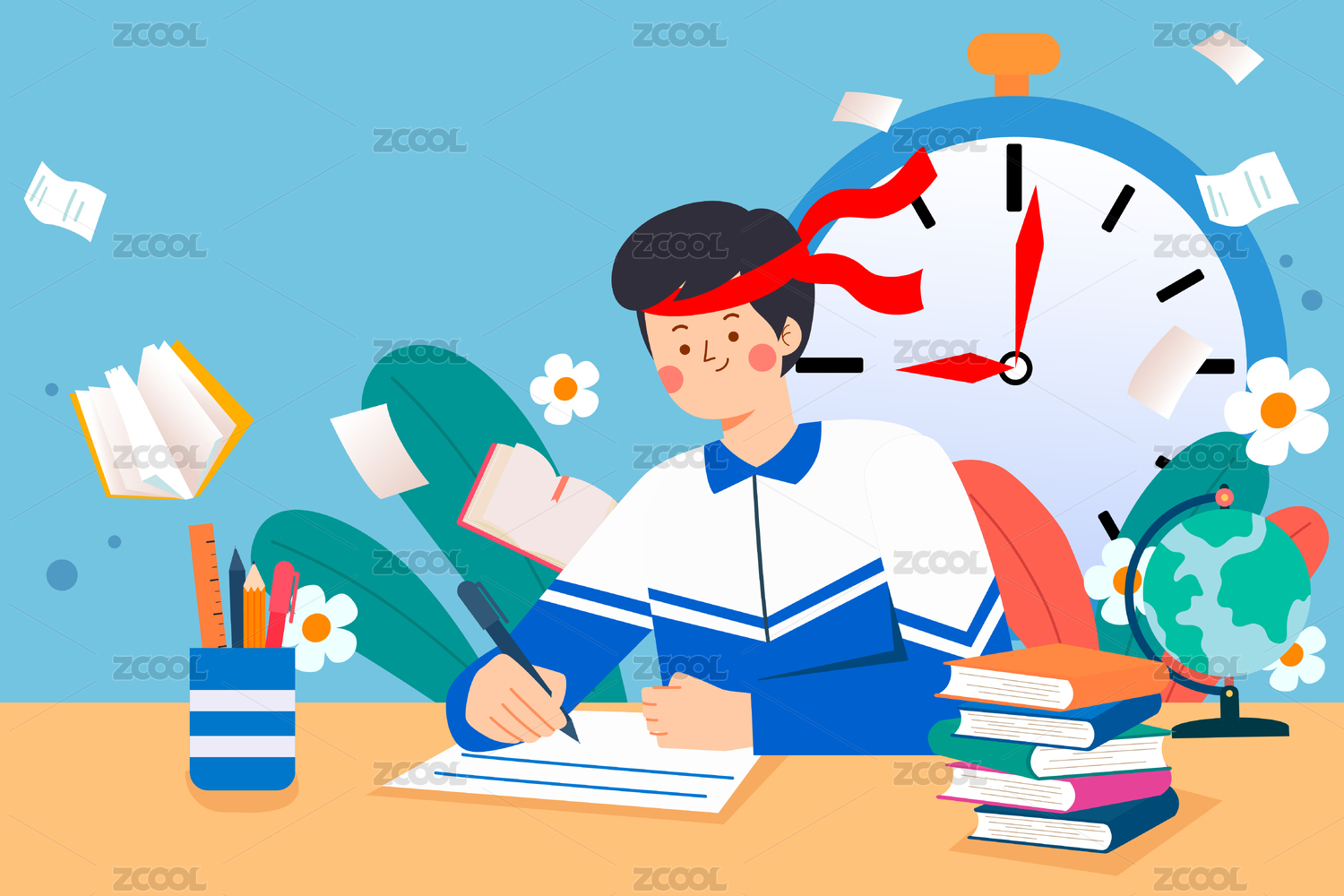 高考必胜倒计时中学生考试冲刺加油学习插画