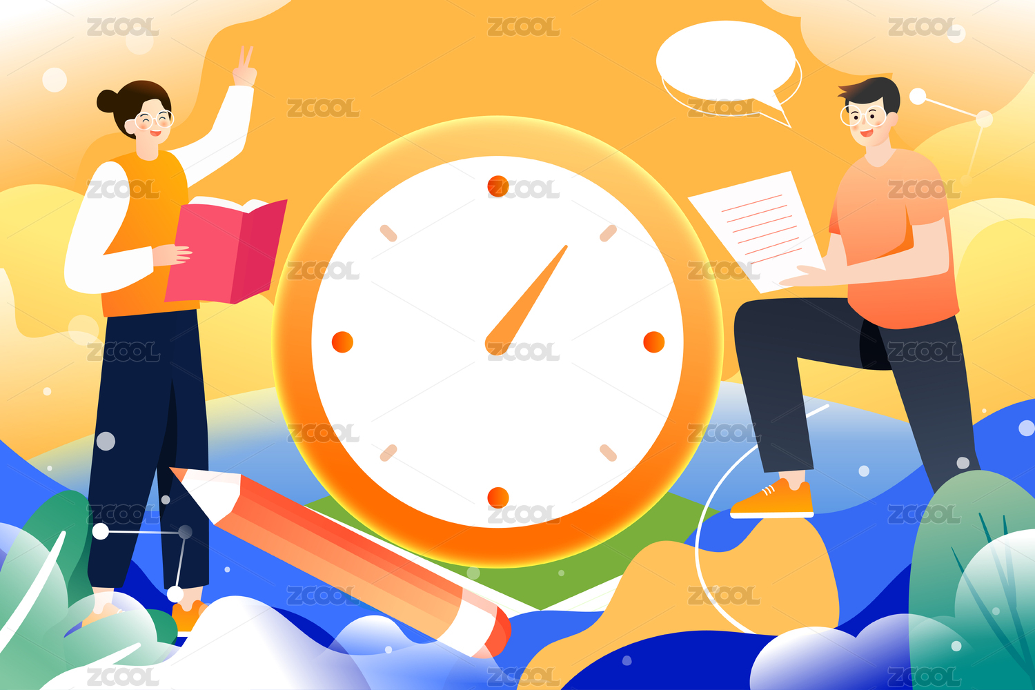 高考倒计时矢量插画