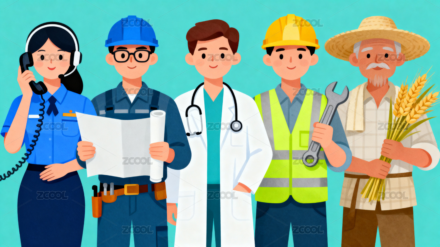 劳动节,职业,白领,扁平,插画,工人,工作,教师,教育,劳动