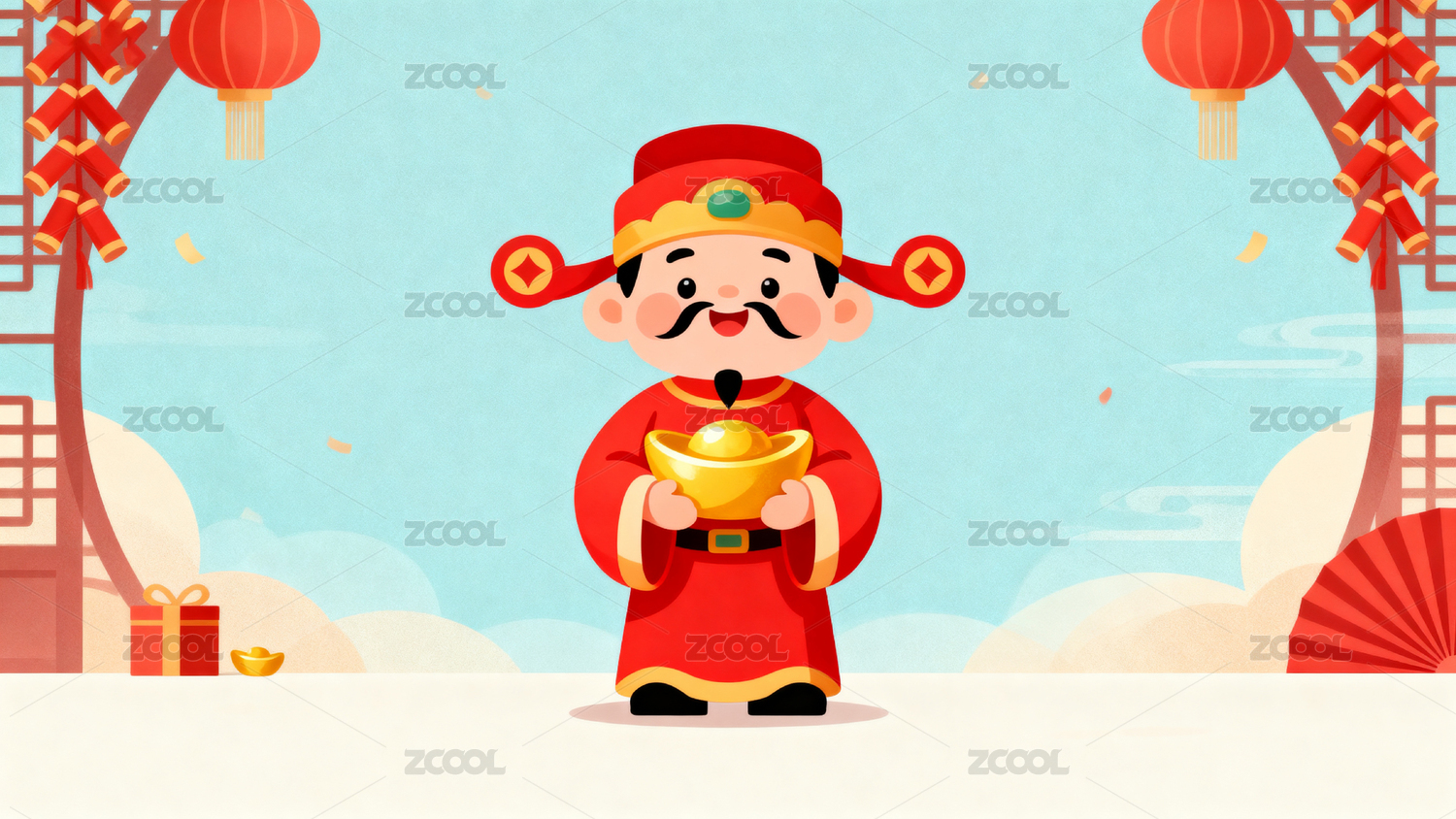 卡通财神手持金元宝庆祝节日