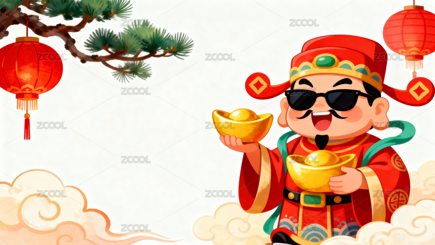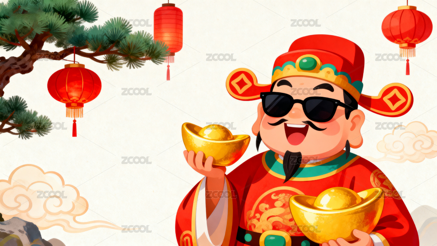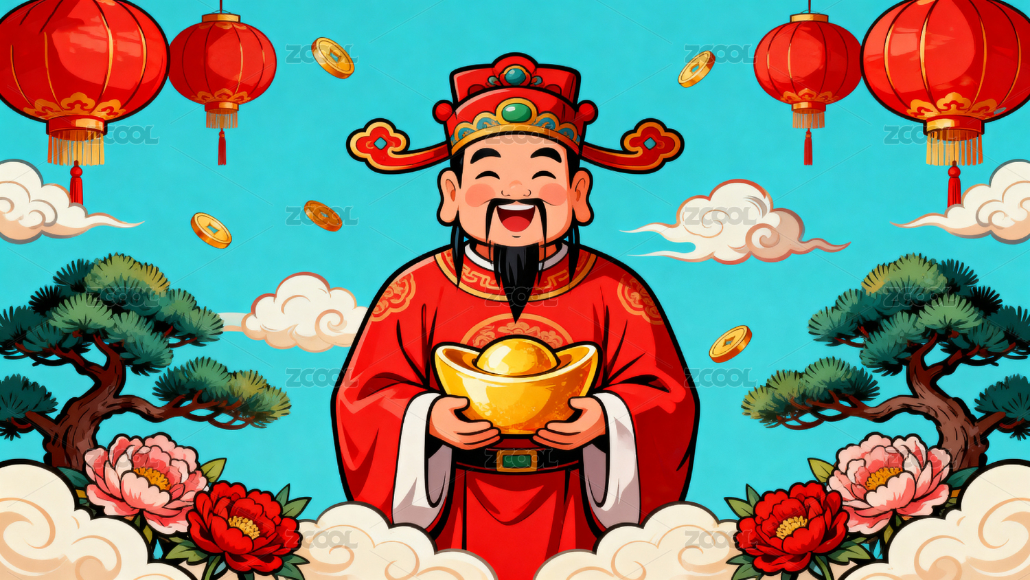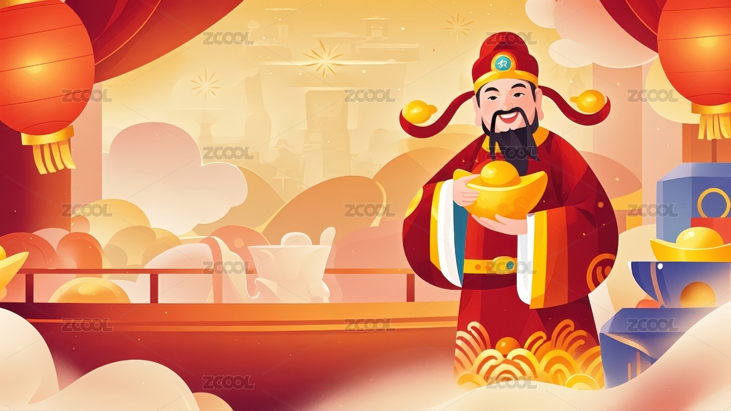 春节财神挂灯笼喜庆图案