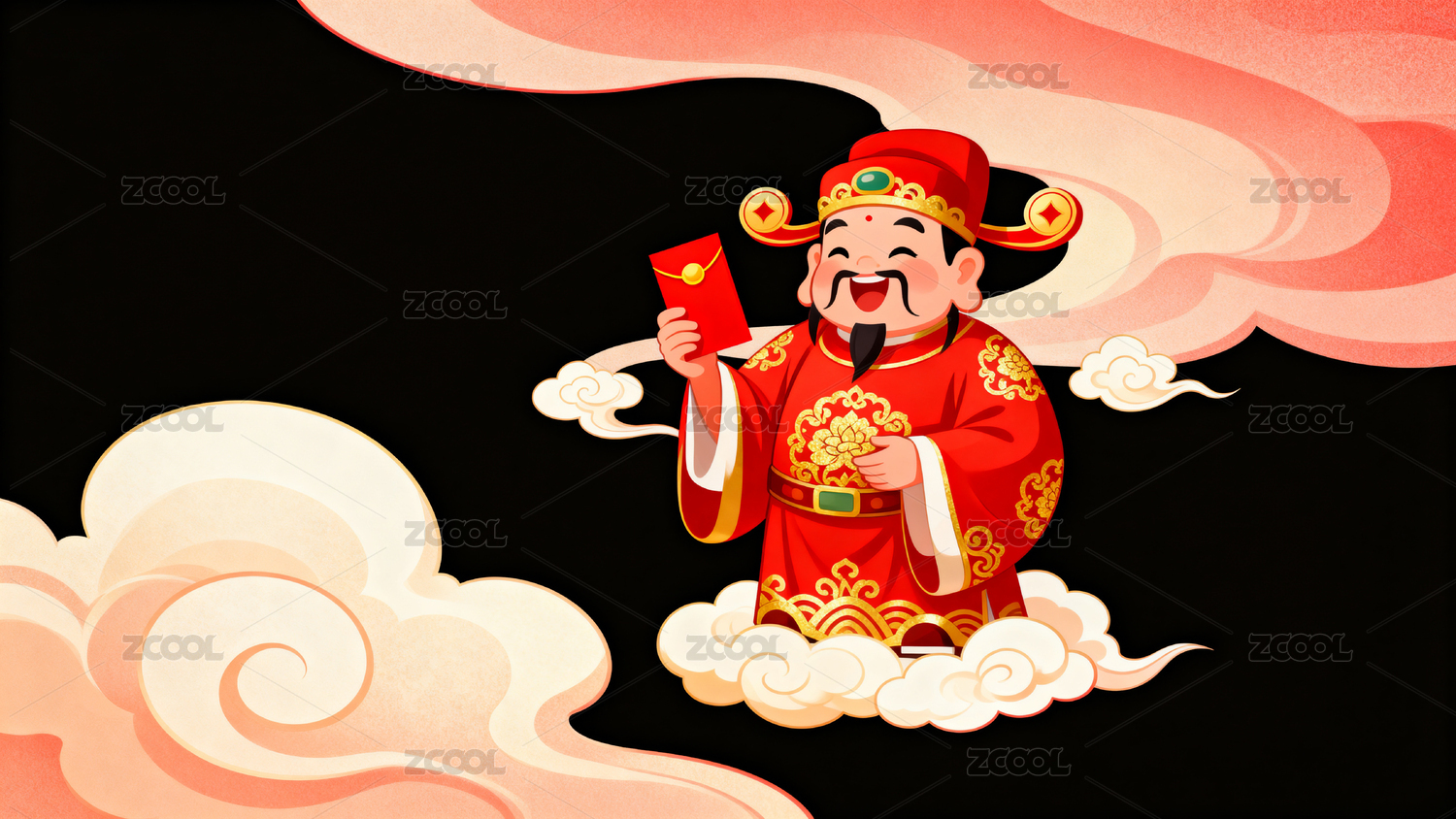 财神手持红包云端微笑